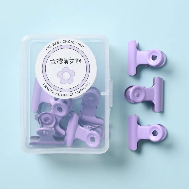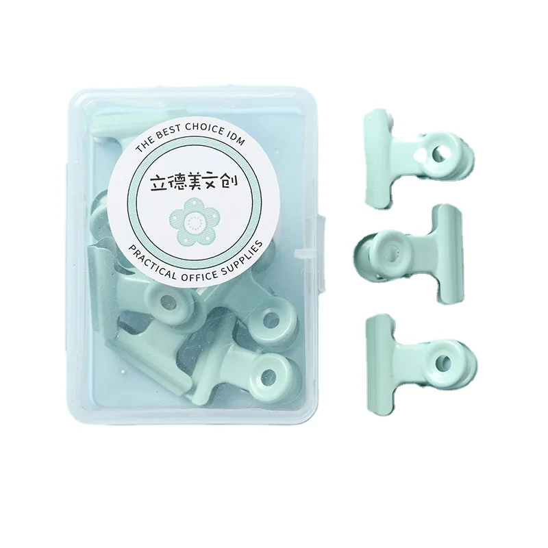 Ins Wind Macaron Color Metal Binding Clip Small Fresh Student Stationery Bill Binder with Color Boxed Clip