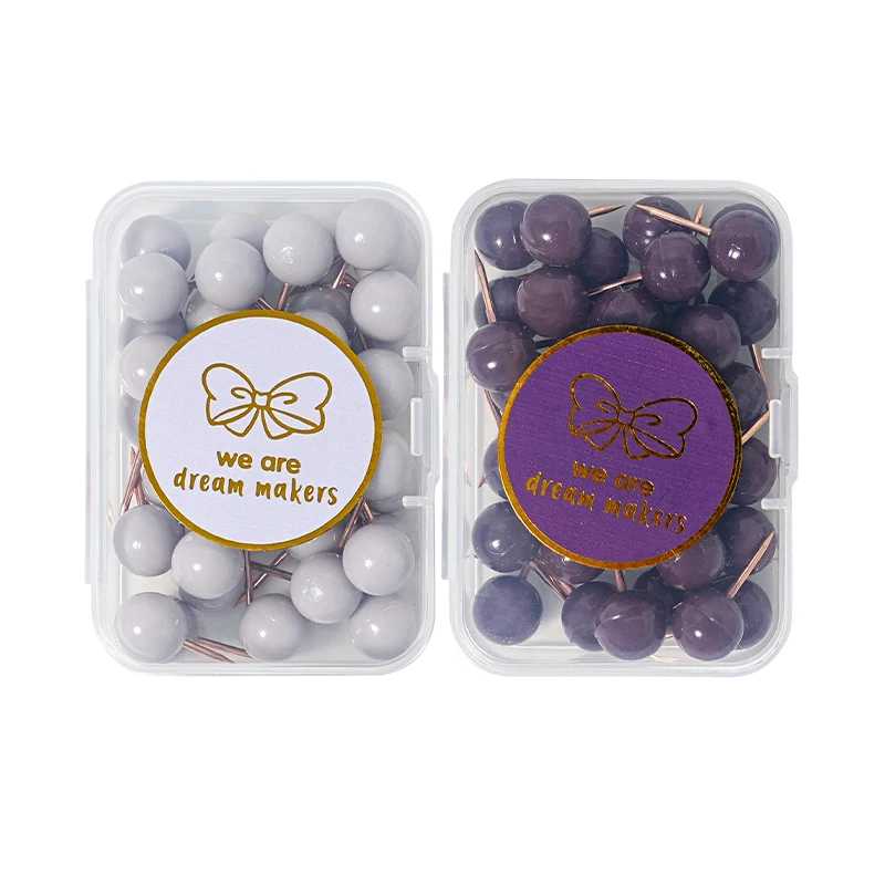 Custom Rose Gold Electroplating Transparent Metal Box Push Pin Pushpin File Fixed Stationery Earth Nail Custom Sticker Package