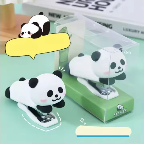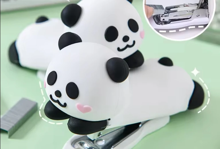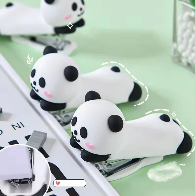 OEM Cute Cartoon Panda Shape Mini Portable Stapler Creative Manual Binding Machine Easy for Students Stationery