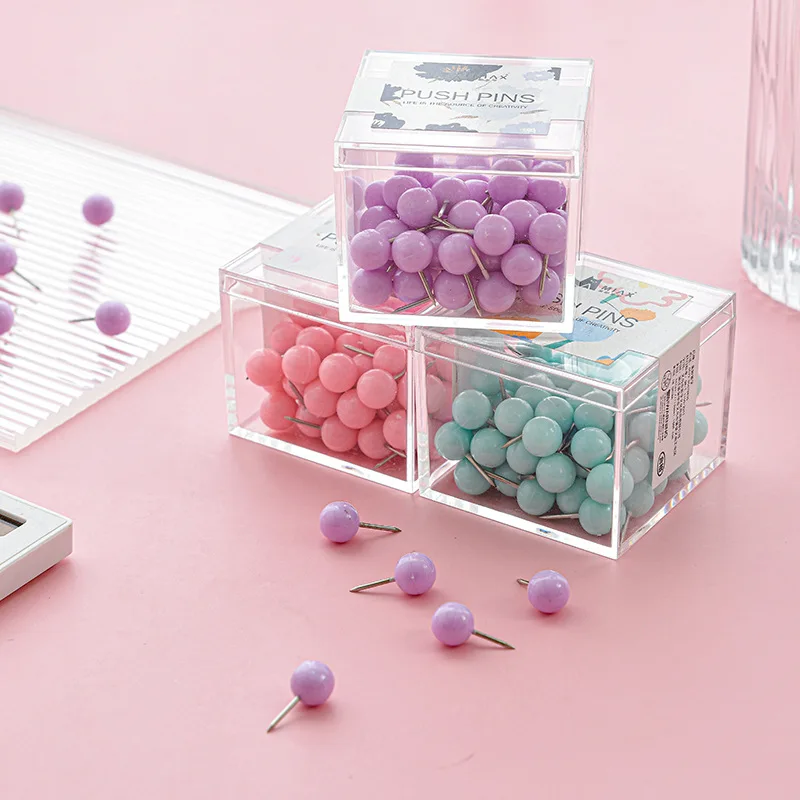 Macaron Earth Creative Plastic Thumb Tack Pins Cork Nail Push Pins for Photo Wall Art Colorful Macaron Earth Cork Nails Box
