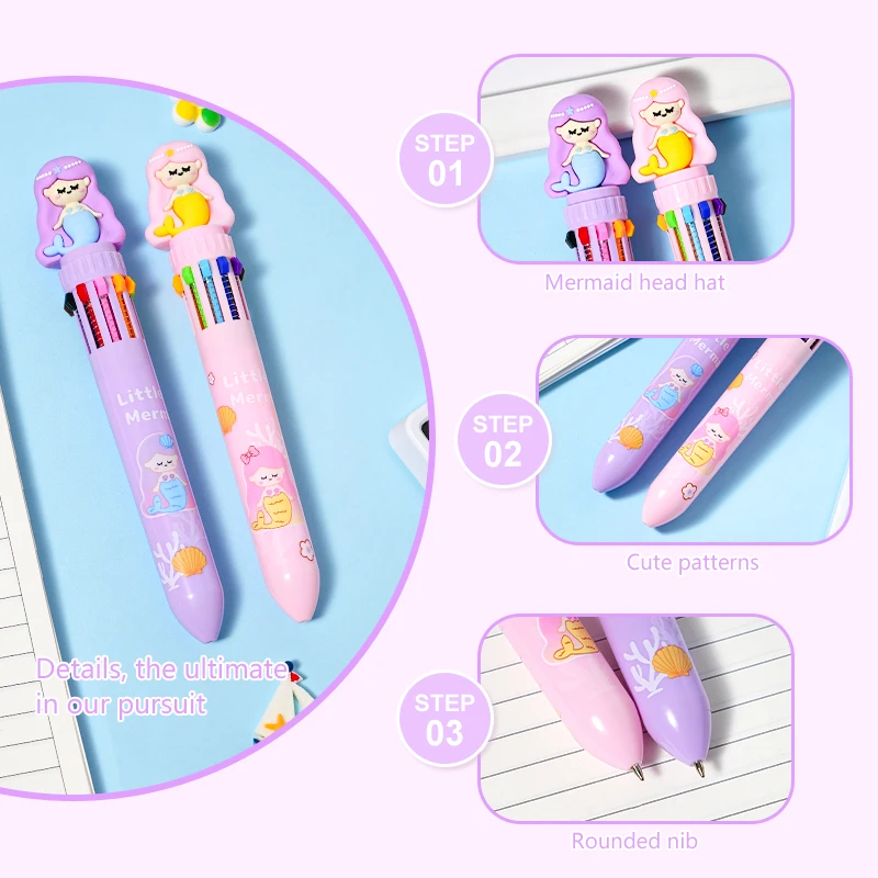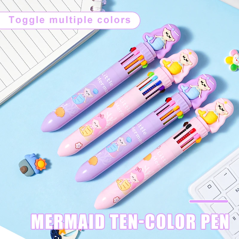 Wholesale 10 Colors 0.7mm Mermaid Plastic Ball Point Pen Beautiful Sign Writing for Office or School 1.0mm Width