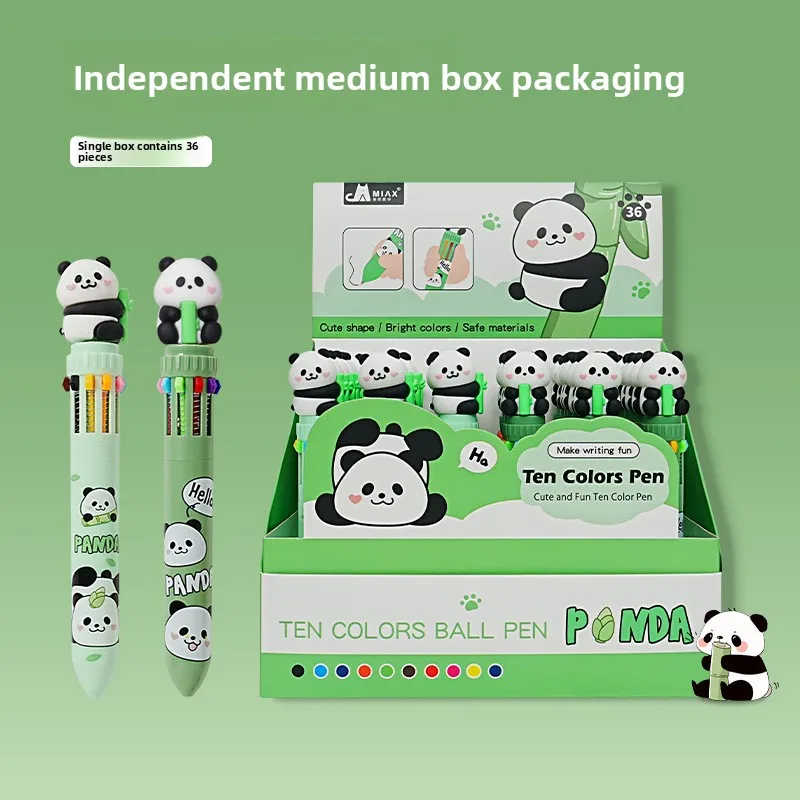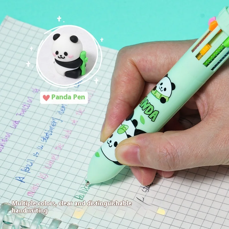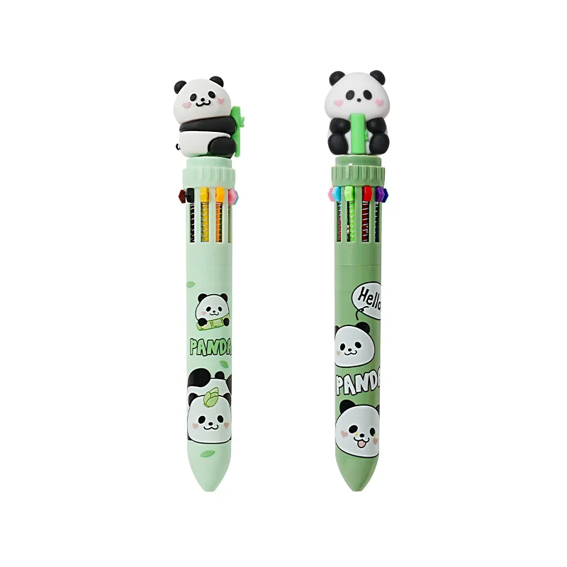 Panda 10-Color Ballpoint Pen Cartoon Push-Type Multi-Colorful Pen 1.0mm Writing Width Student Tool Ten-Colorful Push-Button"