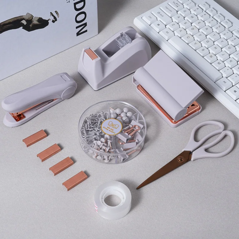 Cross-Border Popular Desktop Office Stationery Set Factory Direct Wholesale-Skin Texture Feel Loose Leaf Hot-Selling Stapler