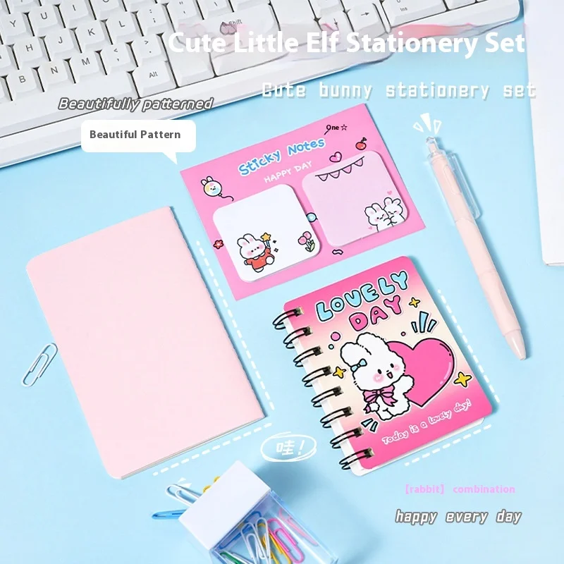 High Value Cute Bunny Spiral Stationery Set Adorable Pink A3 Size PVC Cover Study Supplies for Little Girls Wholesale