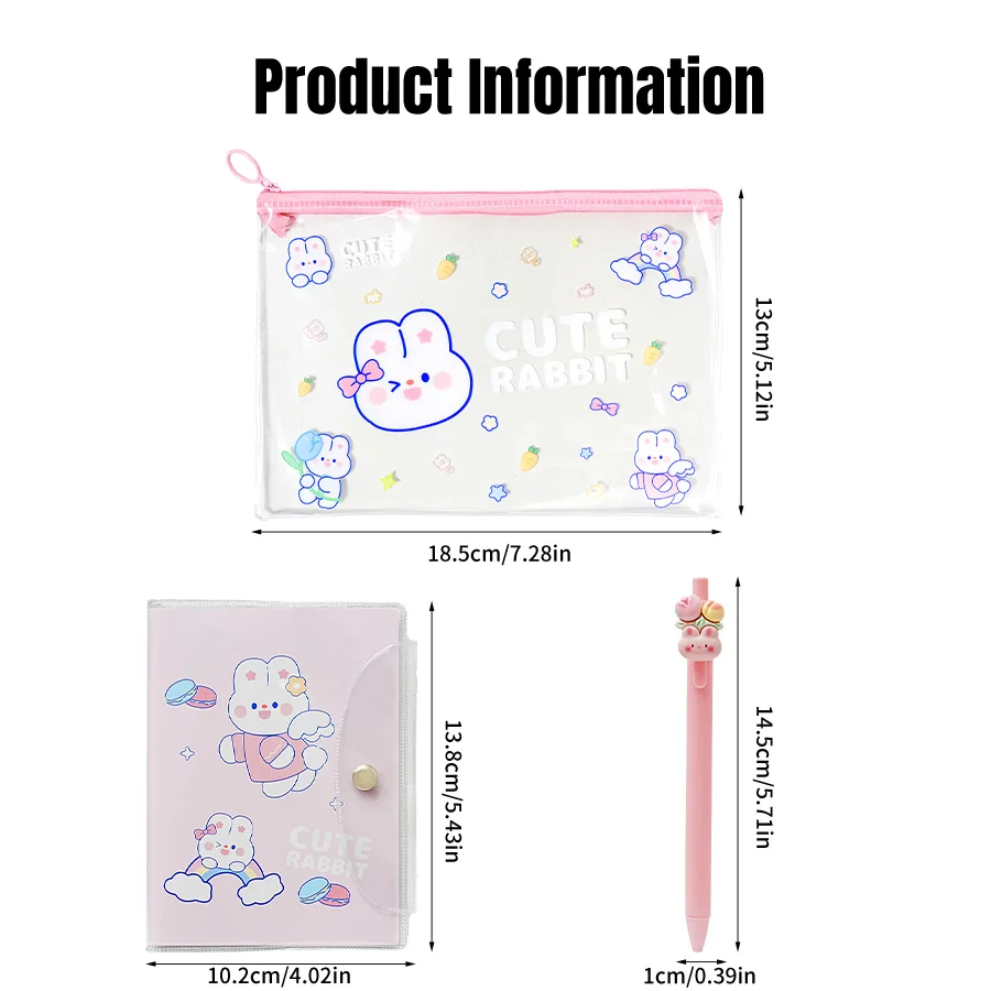 Cute Rabbit Pattern Set Pen Case+Notebook+2 Neutral Pens Student Learning Stationery Set School Gift Festival Gift