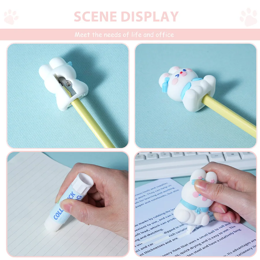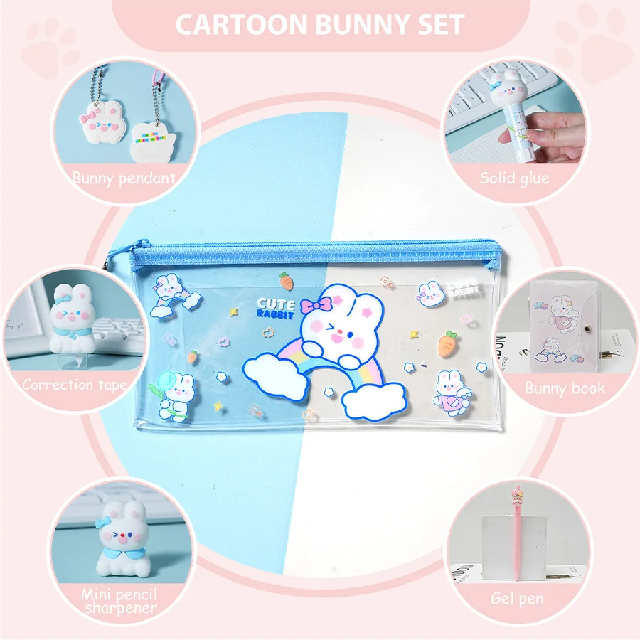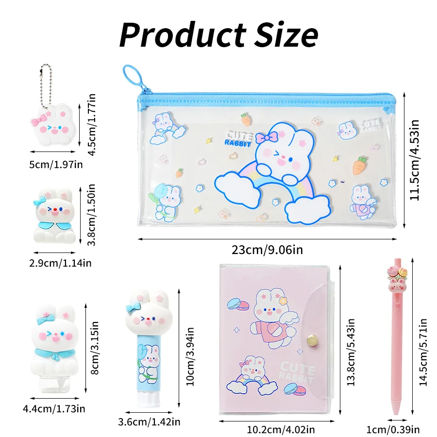 7-piece Stationery Set Includes a Pencil Case, Pencil Sharpener, Correction Tape, Solid Glue Notebook, Neutral Pen Bunny Pattern