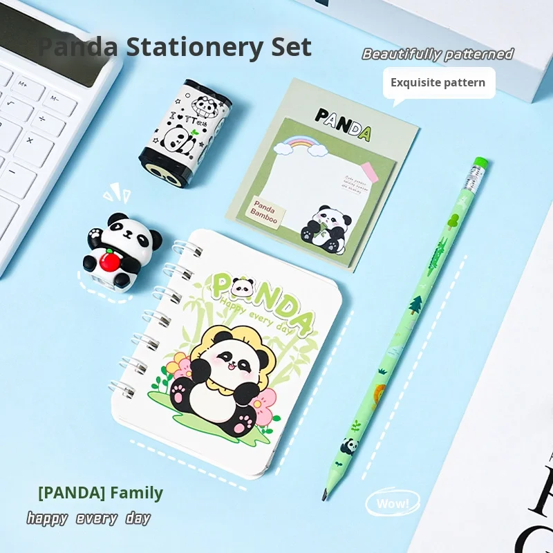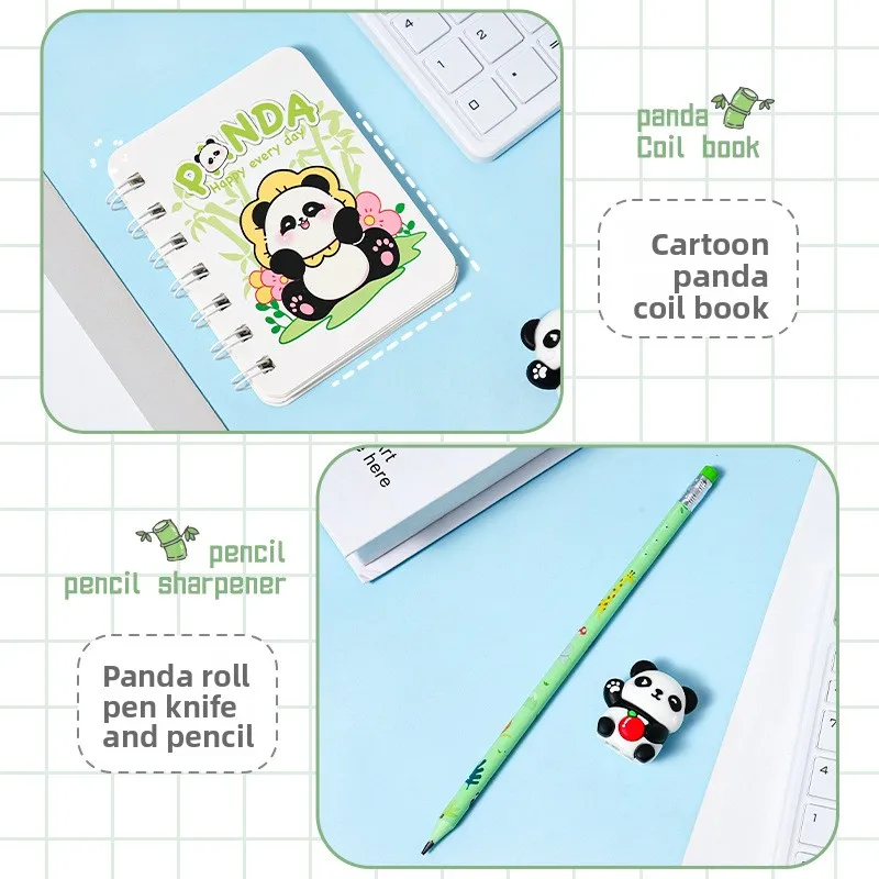 New Creative Panda Coil Book Set High-Value Spiral Bound Stationery for Students Wholesale with Elegant Paper Cover Gift Box