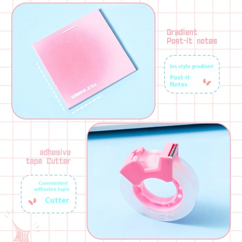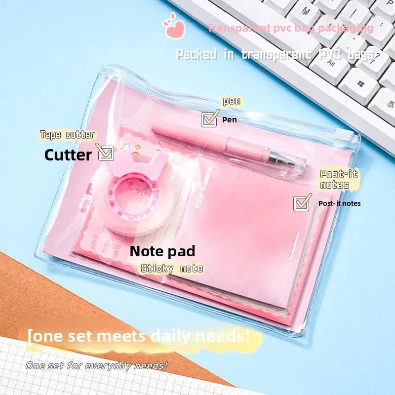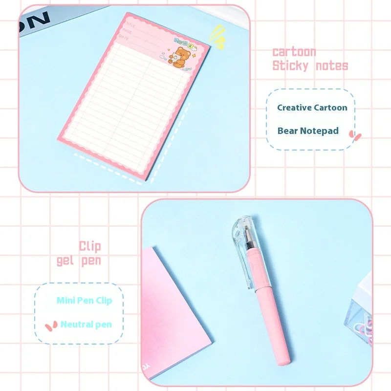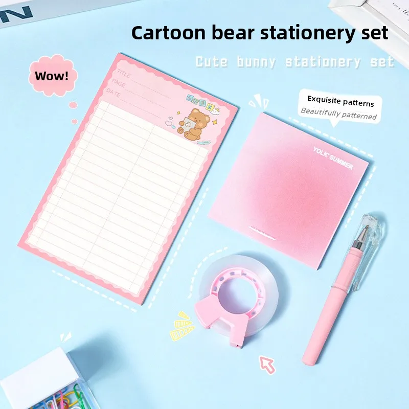 Cartoon-Themed Student Back-to-School Set High-Value Pink Stationery Sticky Notes Notebook Black Pen 0.5mm Writing Wholesale
