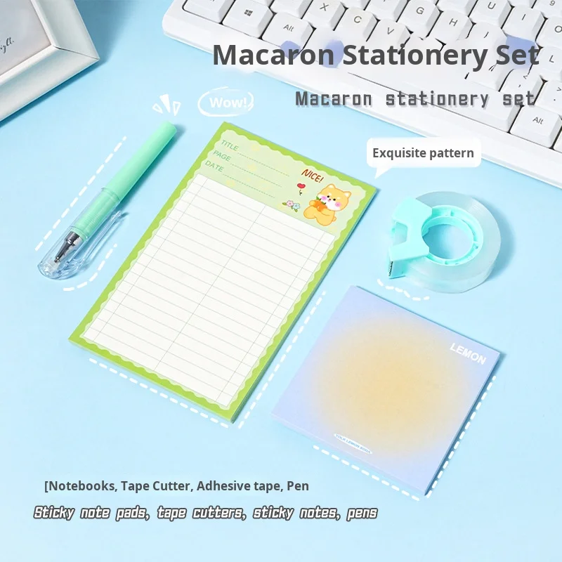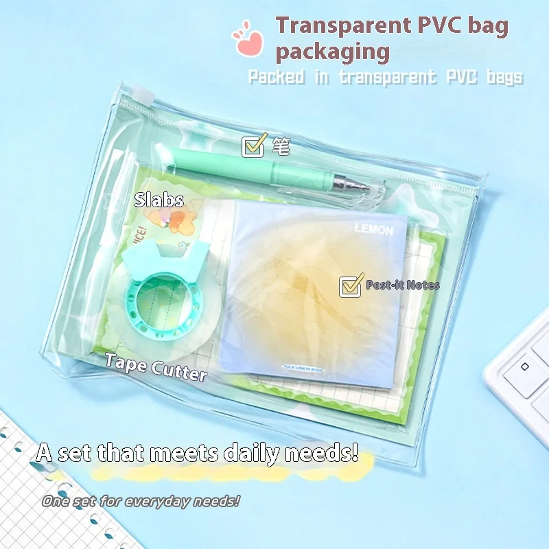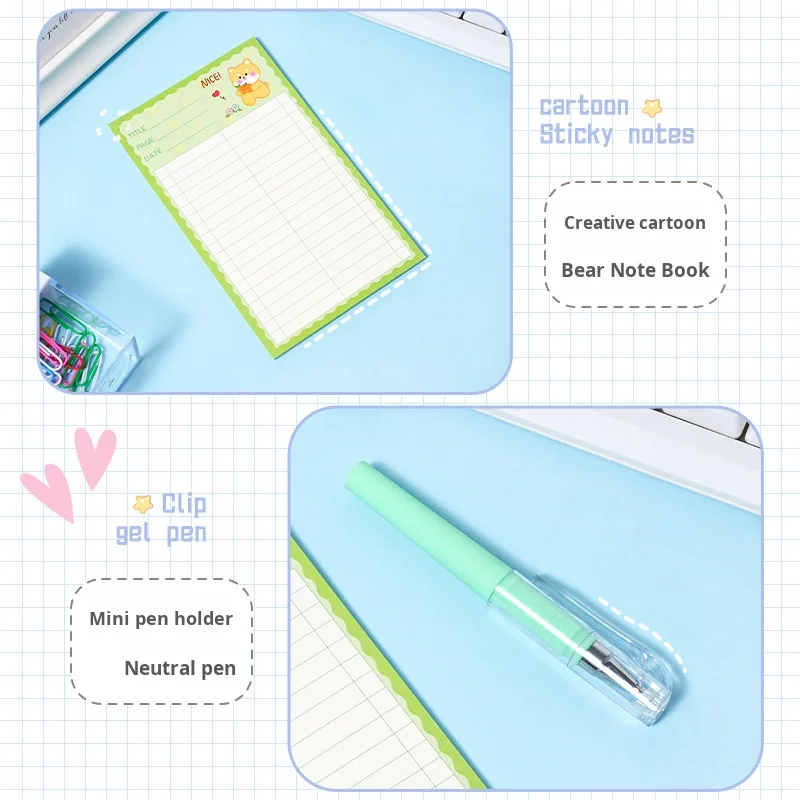 Cartoon-Themed Green Stationery Set for Students High-Looking Back-to-School Items with Black Pen Notebook Sticky Note Wholesale