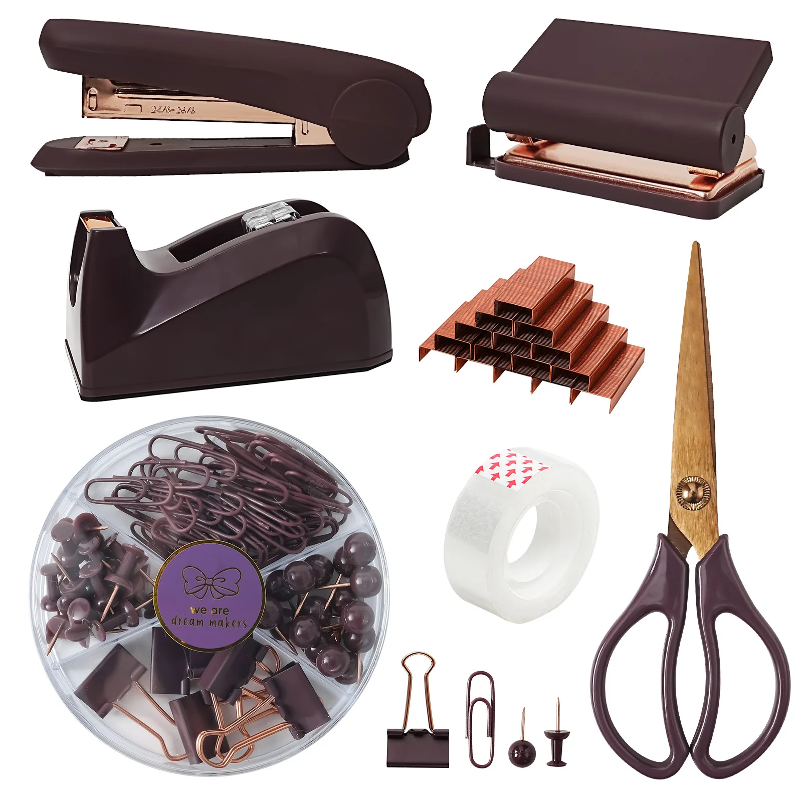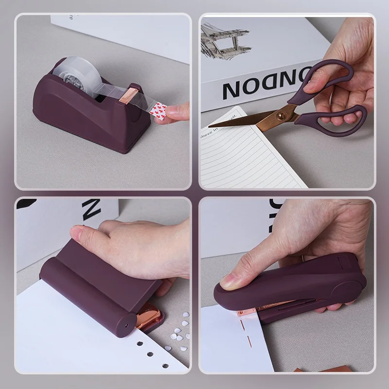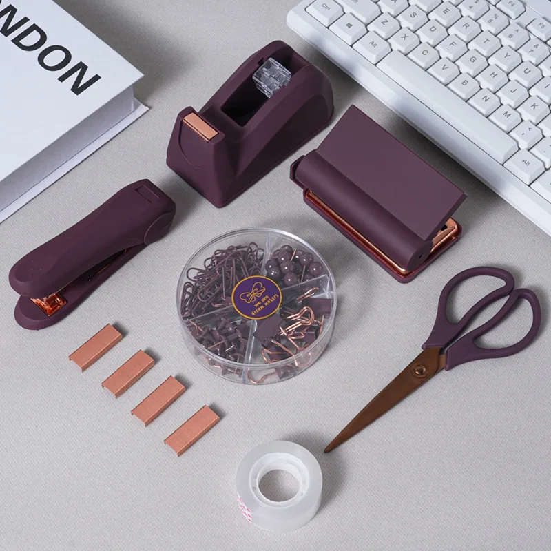 For Amazon Hot Selling Business Desktop Stationery Set Manual Power Scissors Tape Hole Punch Stapler Wholesale