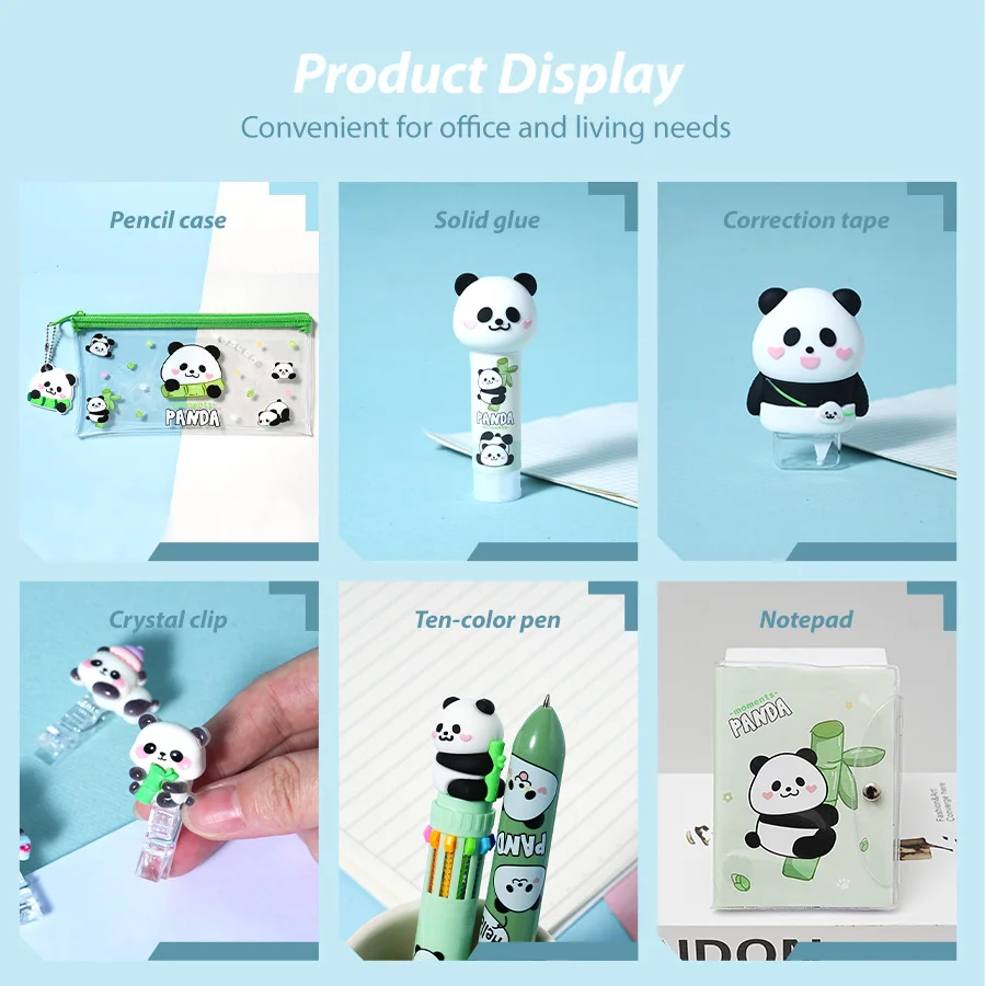 Student Stationery Set: Loose Leaf Notebook, Pencil Case, Solid Glue, Correction Tape, Neutral Pen, Name Label & Crystal ClipBag