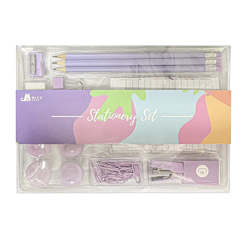 Cute Macaron Color Office Supplies Kit - Cartoon Notebook, Pencil, Binder Clips & Stapler | Hot Selling for Daily Use