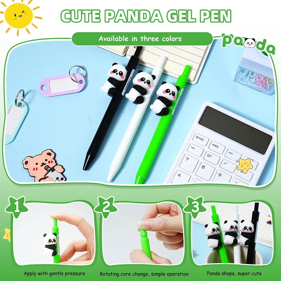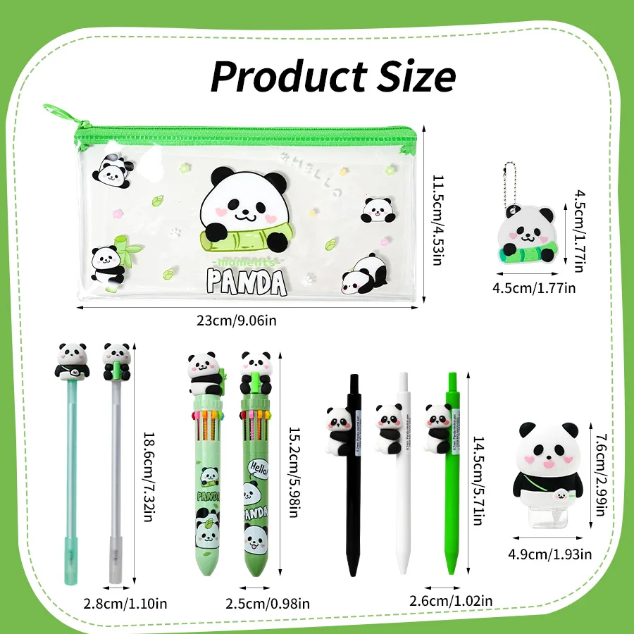 Panda Themed Stationery Set - 7 Gel Pens, Pencil Case, 1 Correction Tape & 1 Name Tag | for Students & Office Use
