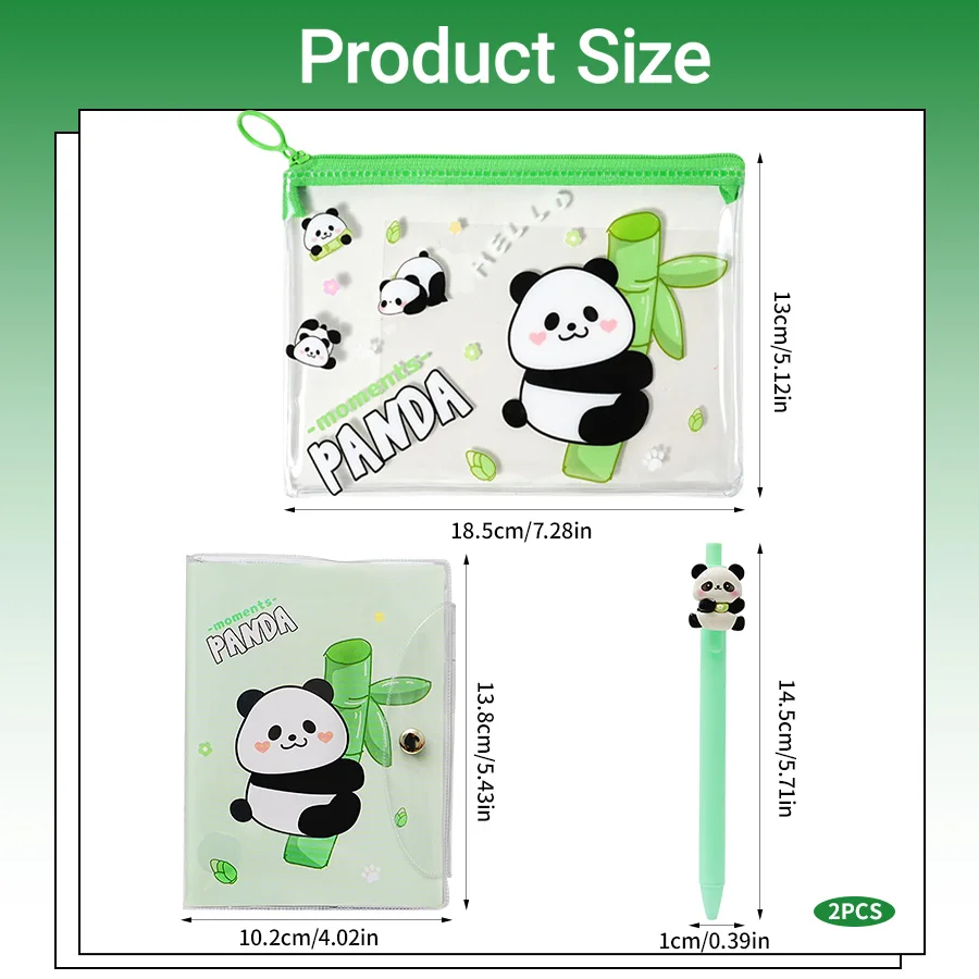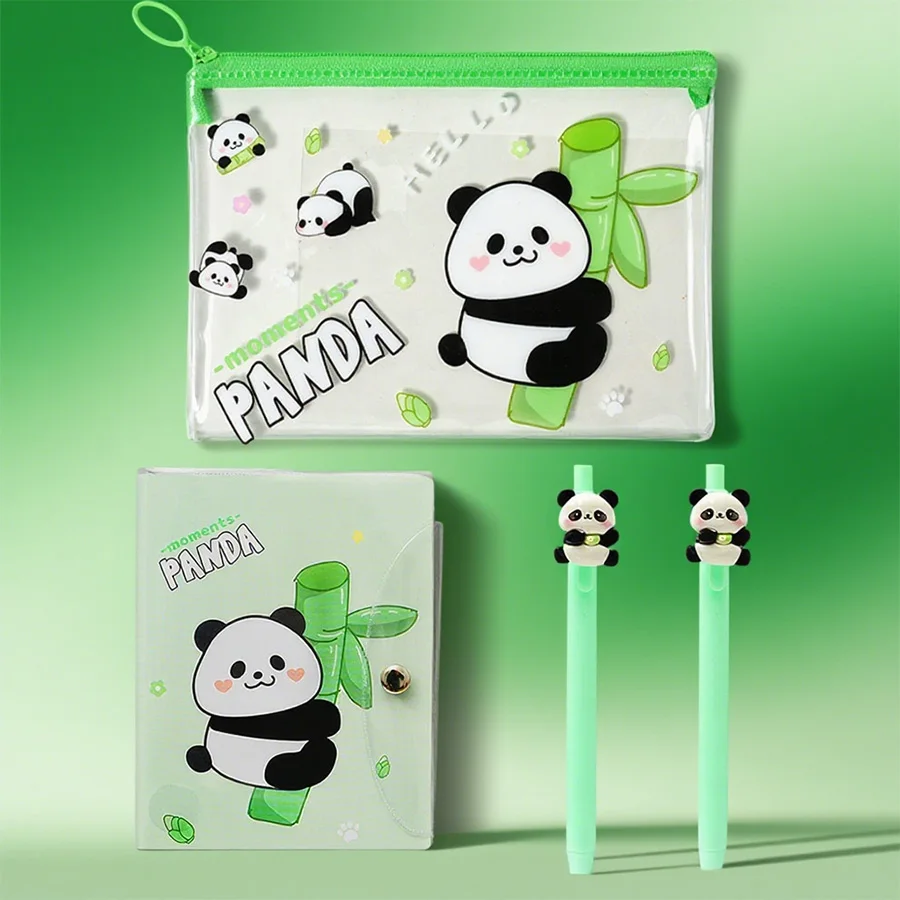 Cute Panda Stationery Kit - Notebook, Pencil Pouch + 2 Gel Pens | Student & Office Supplies