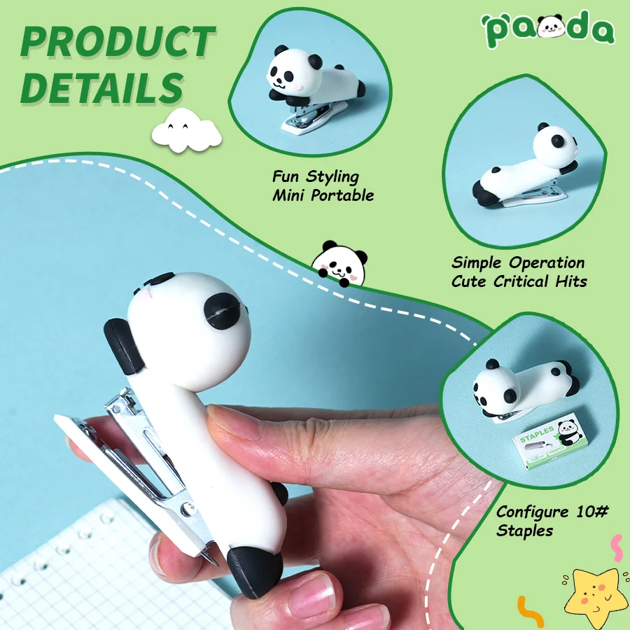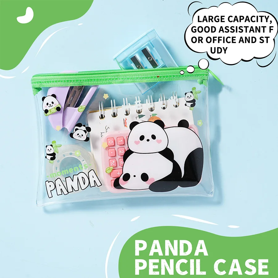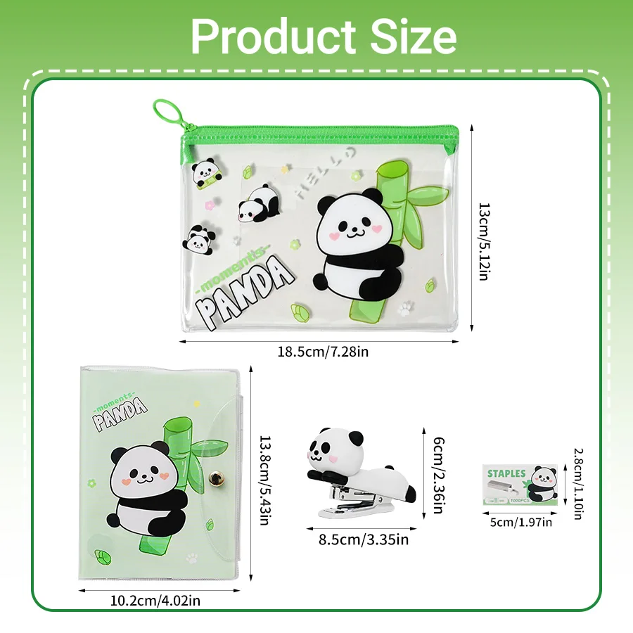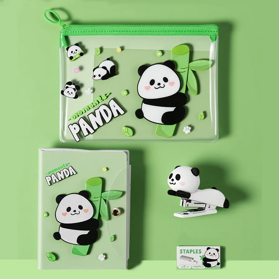 Cute Panda Stationery Kit - Stapler, Notebook, Pencil Pouch + 1 Box of Staples | Student & Office Supplies