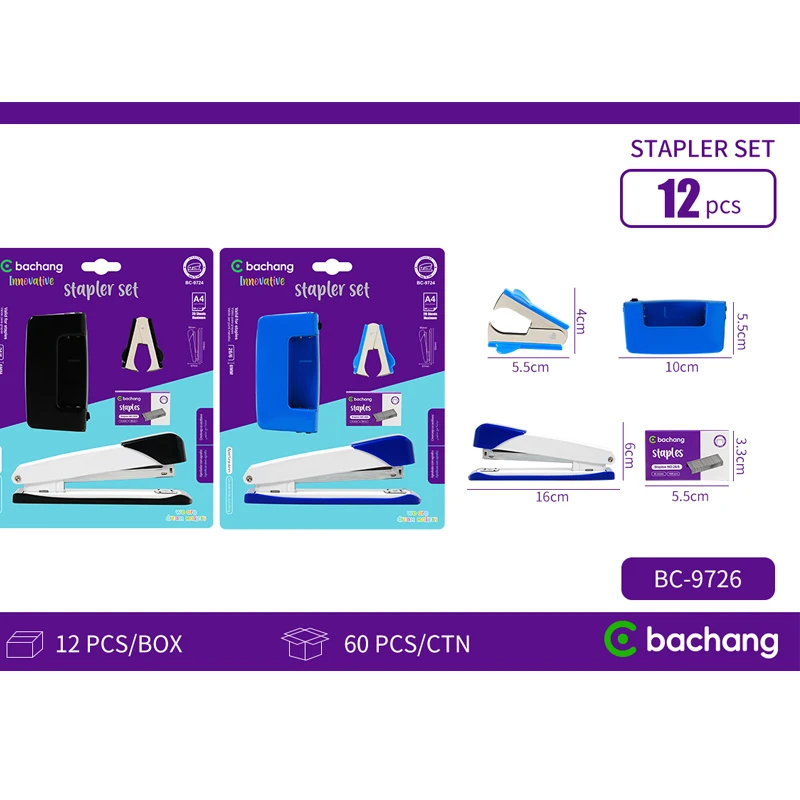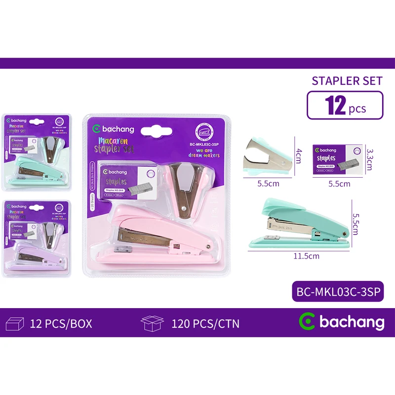 Multi-Color Office Stationery Set: Stapler (Basic & Macaron Tones) with Matching Staples and Hole Punch