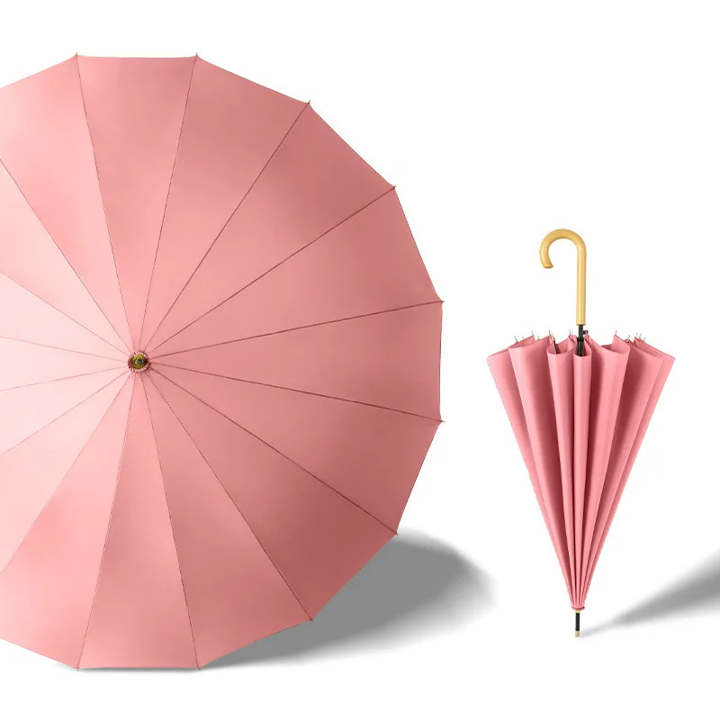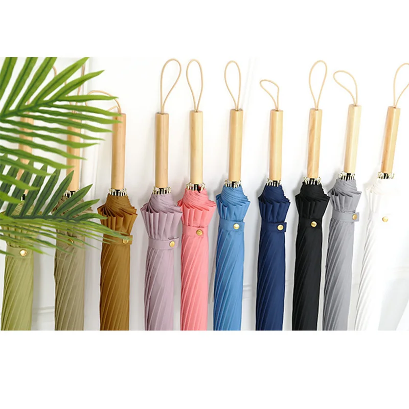 Solid Wood Straight Automatic Umbrella - Long Handle with Fresh Design & Leather Grip | Logo-Printable Gift/Advertising Umbrella