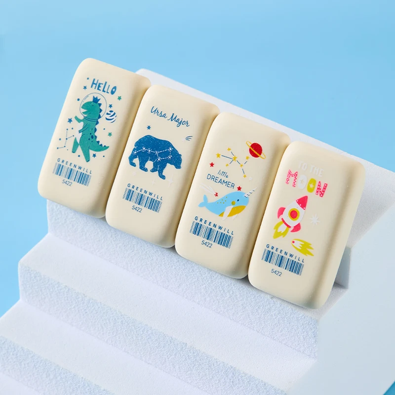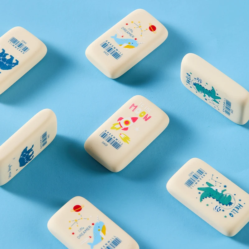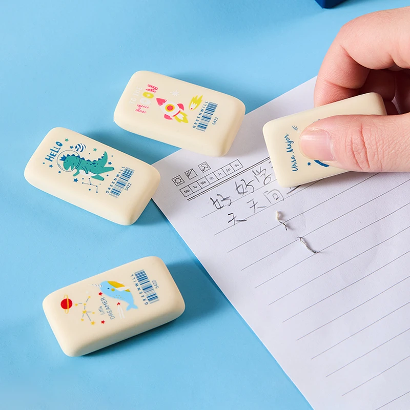 Solid-color Cartoon Erasers: Cute Prints, Clean Erasing. for Homework, Doodles. Multi-piece Pack for Long Use
