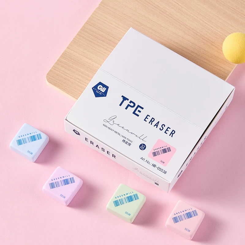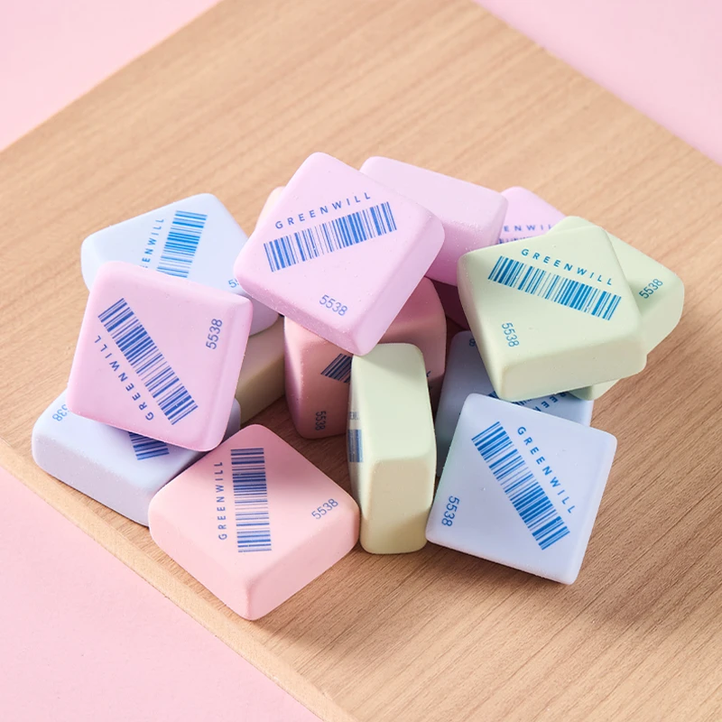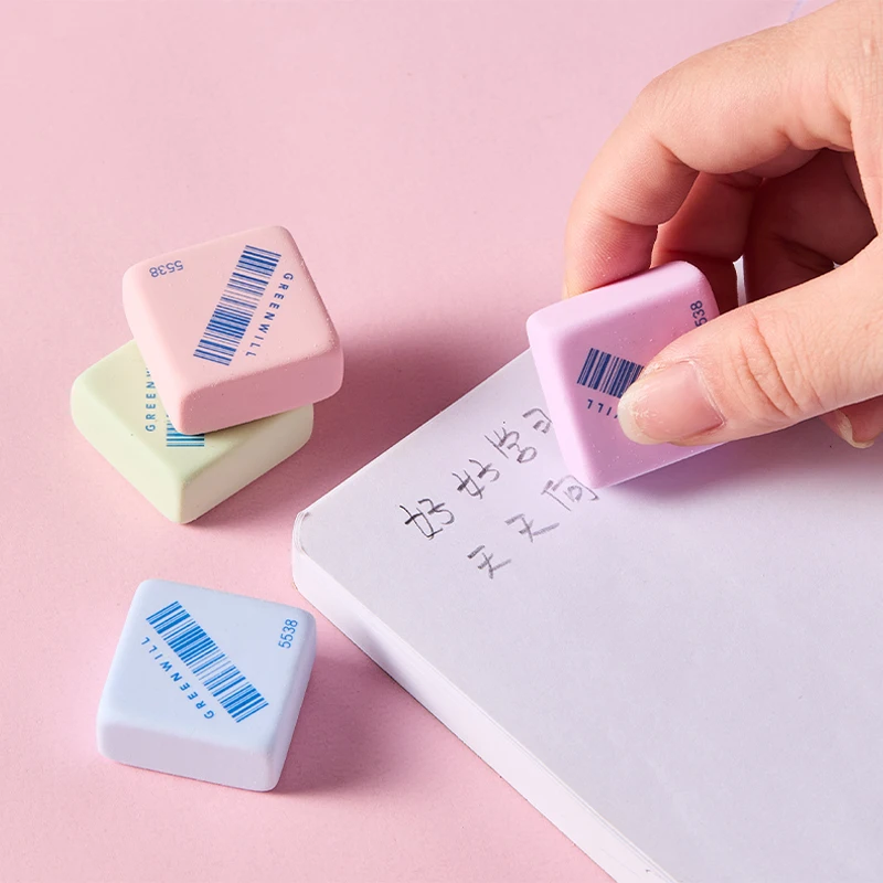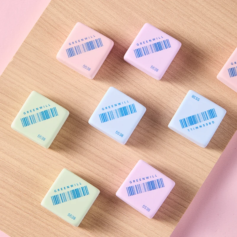 Square-Shaped Colorful Erasers: High-Quality Material, Bright Hues (Pink/Blue/Green). Perfect for School Kits & Office Supplies
