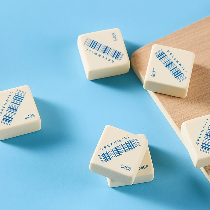 Classic Square Erasers: Timeless Look, English & Barcode Prints for Style, Fits Pencil Writing, Practical with Character