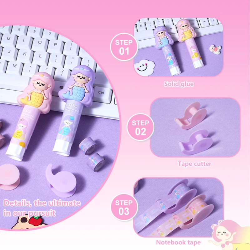 Mermaid Solid Glue & Mini Tape Blister Pack (Pink/Purple Assortment)