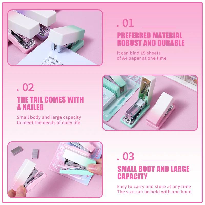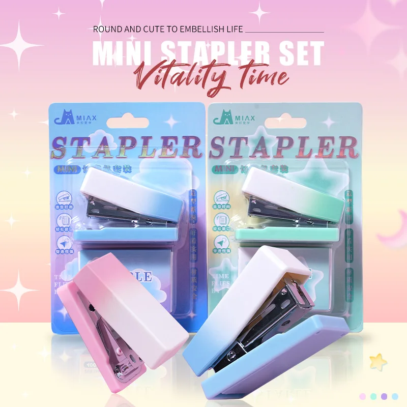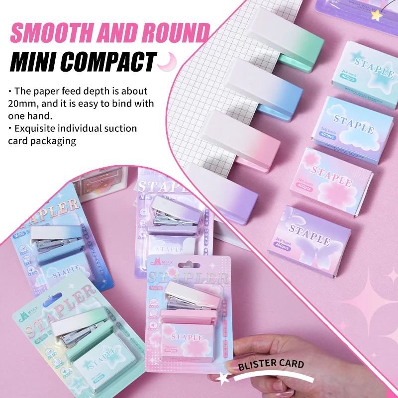 Pastel Gradient Mini Stapler Kit with Matching Staples Cute, Compact Easy to Use