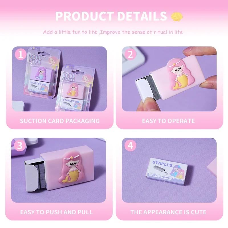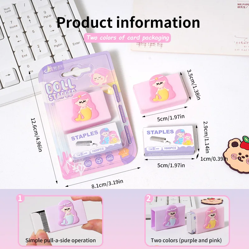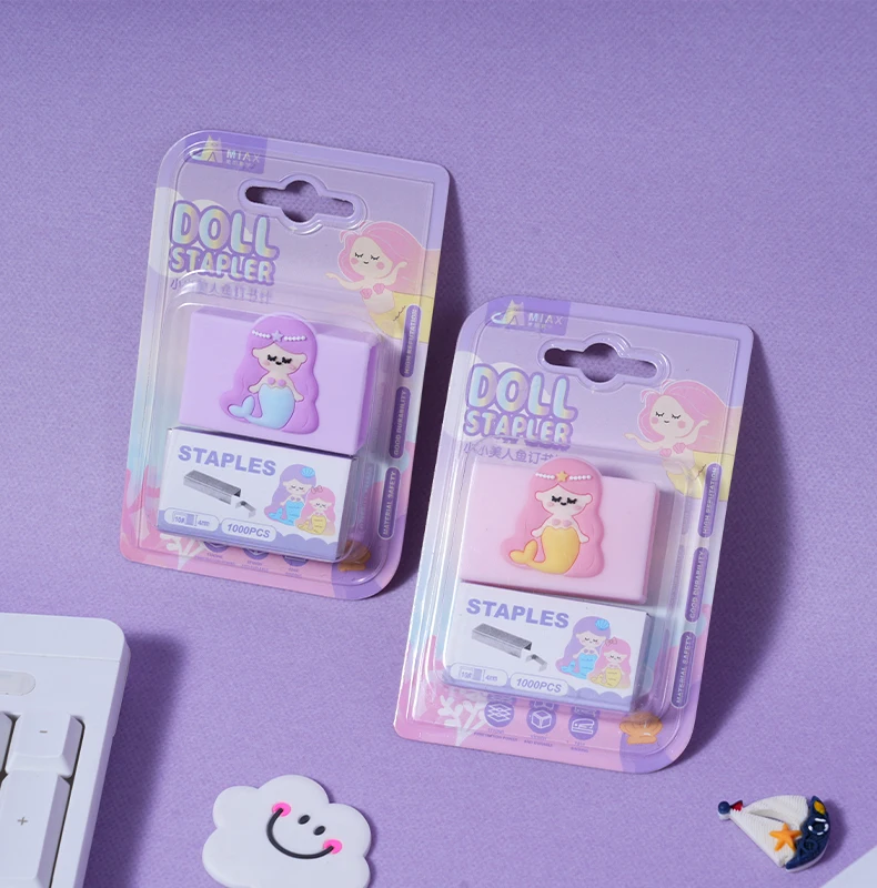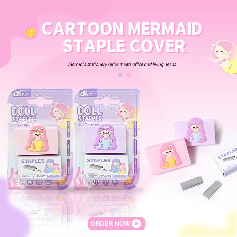 Mermaid - Series Staples with Cartoon - Shaped Staple Covers, Adorable & Practical
