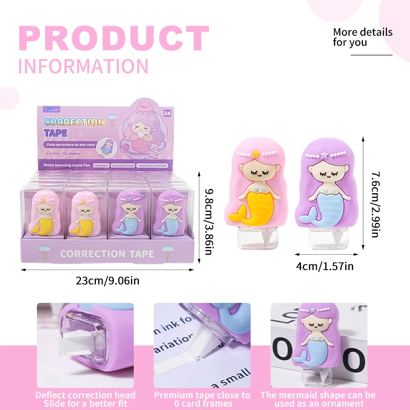 High-Value Mermaid-Shaped Correction Tape: Smooth Coverage, Tear-Resistant, Ideal Stationery for Students