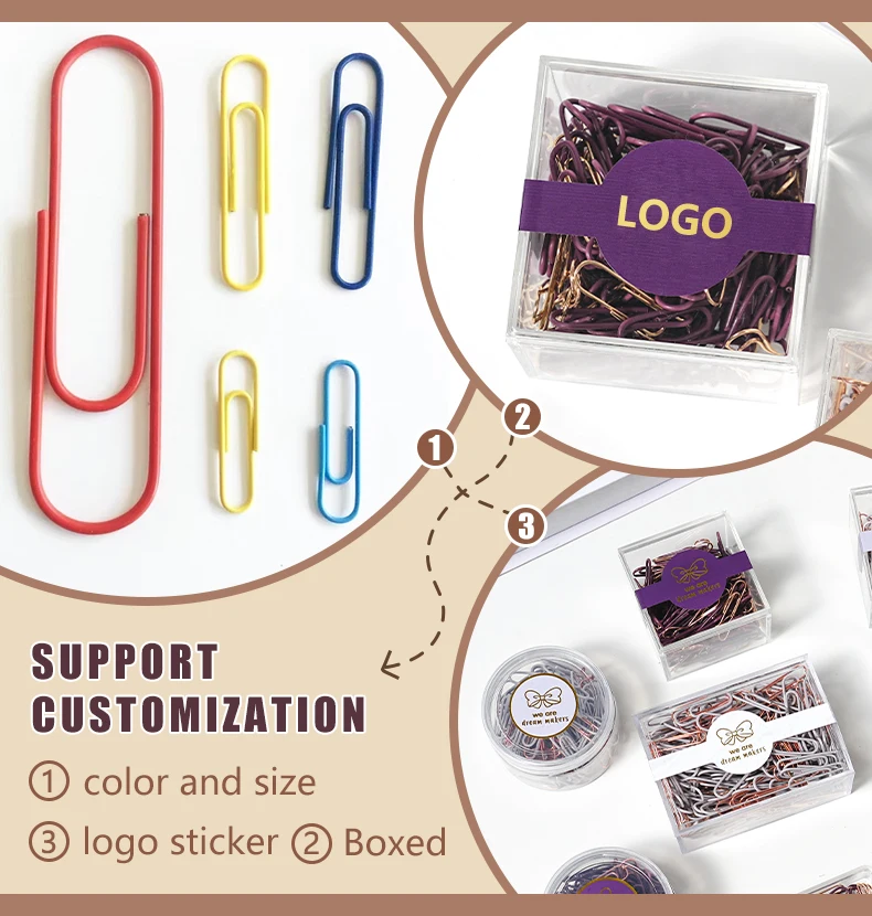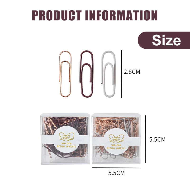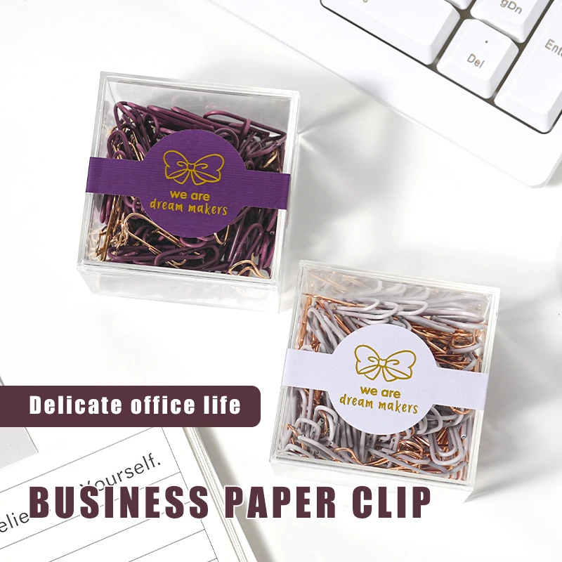 120 Piece Business Colored Gold Mixed Paper Clips in Acrylic Square Box