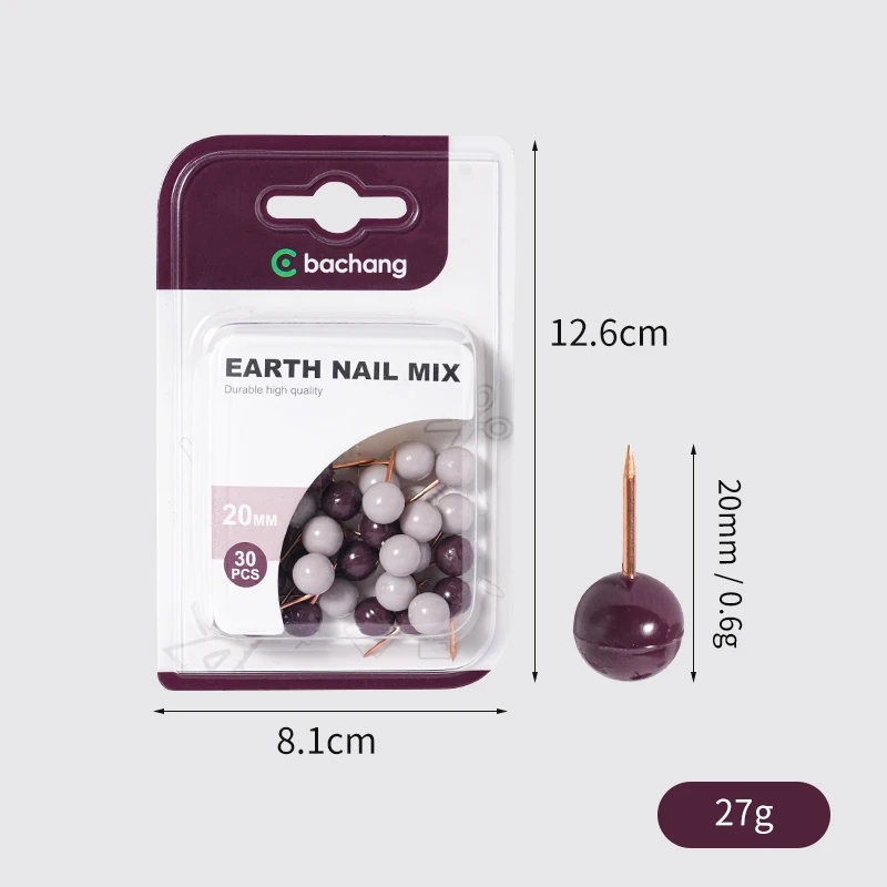 20mm Rose Gold Pin Earth Nails, Pack of 30 From Bachang (BC - 9017) - Ideal for Bulletin Boards and DIY Projects