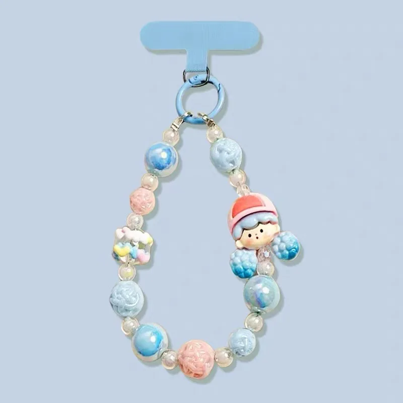 Hit Anti Lost Phone Chain With Beads Cartoon Flower Phone Lanyard DIY Pearl Bag Hanger Keychain