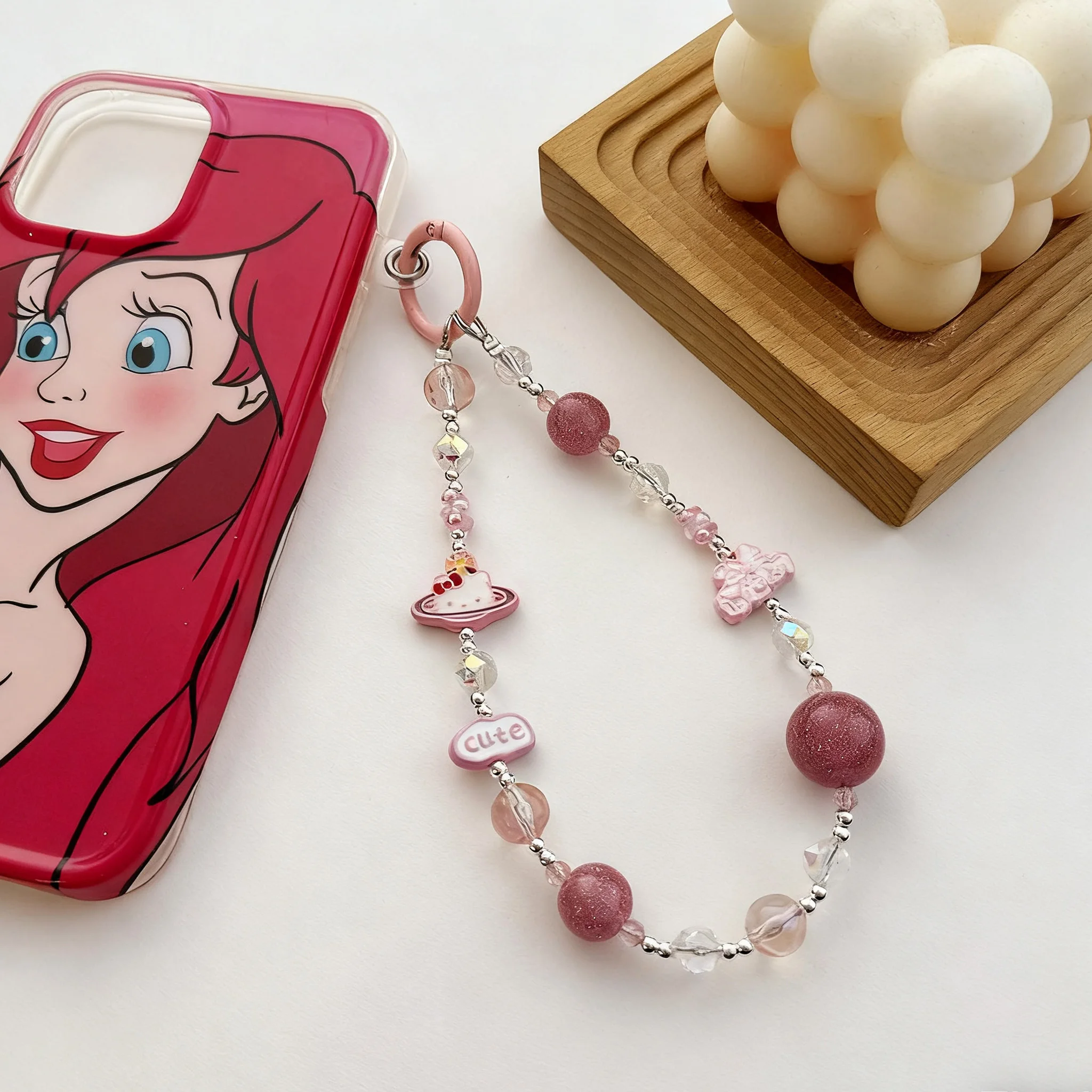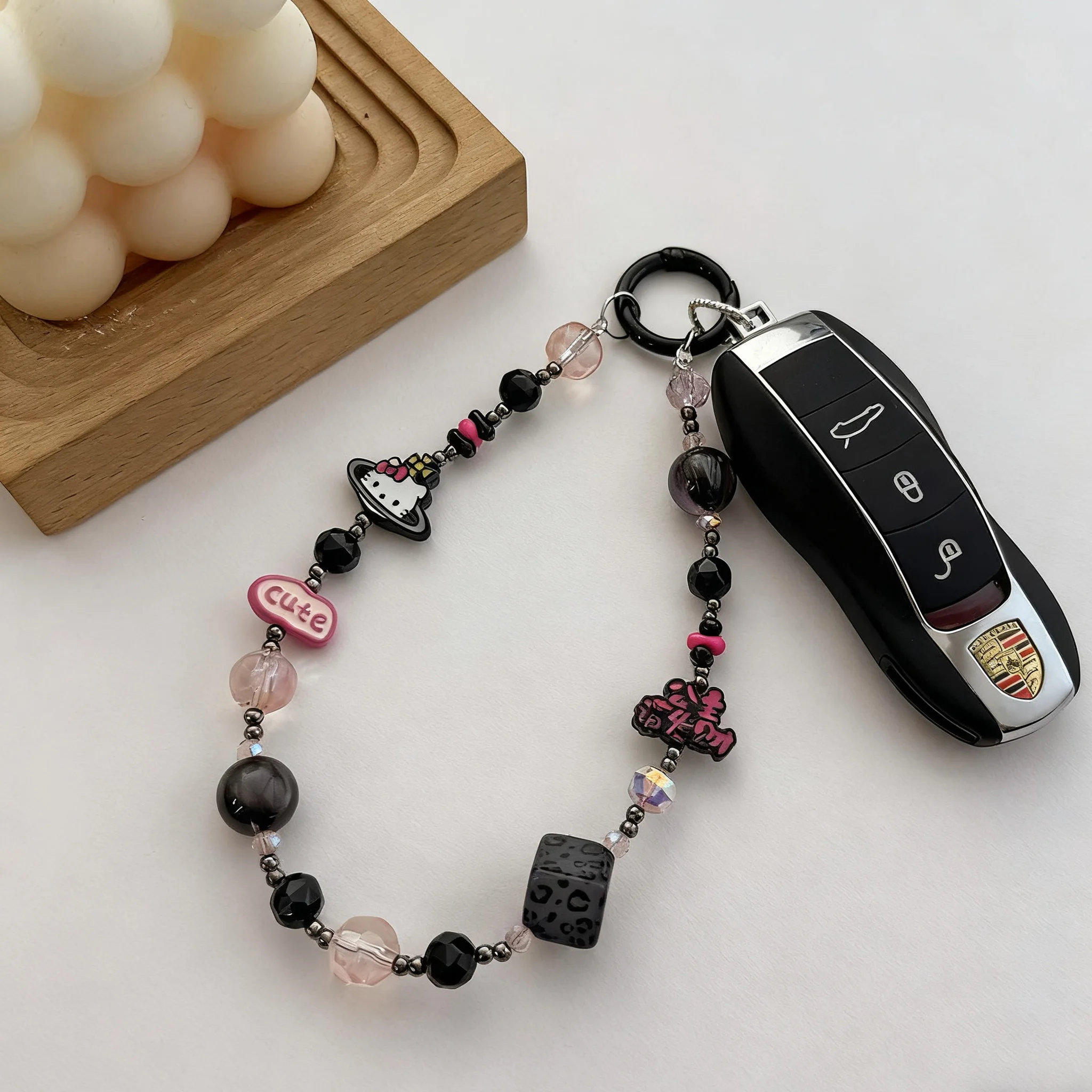 Cartoon Alloy Princess Prosperity Mobile Phone Chain Crystal Black Pink Sweet Cool Colorful KT Bag Hanger Keychain Pendant