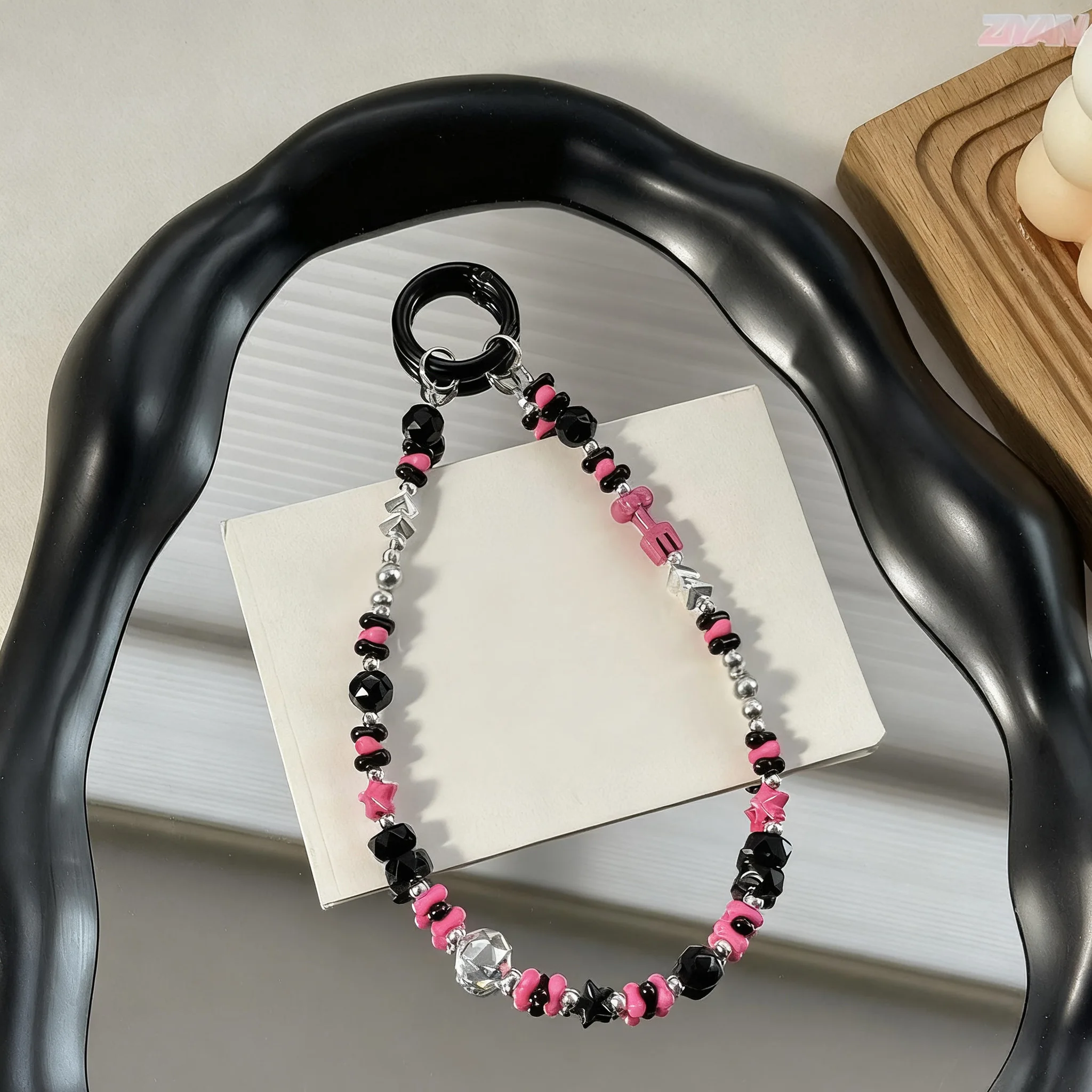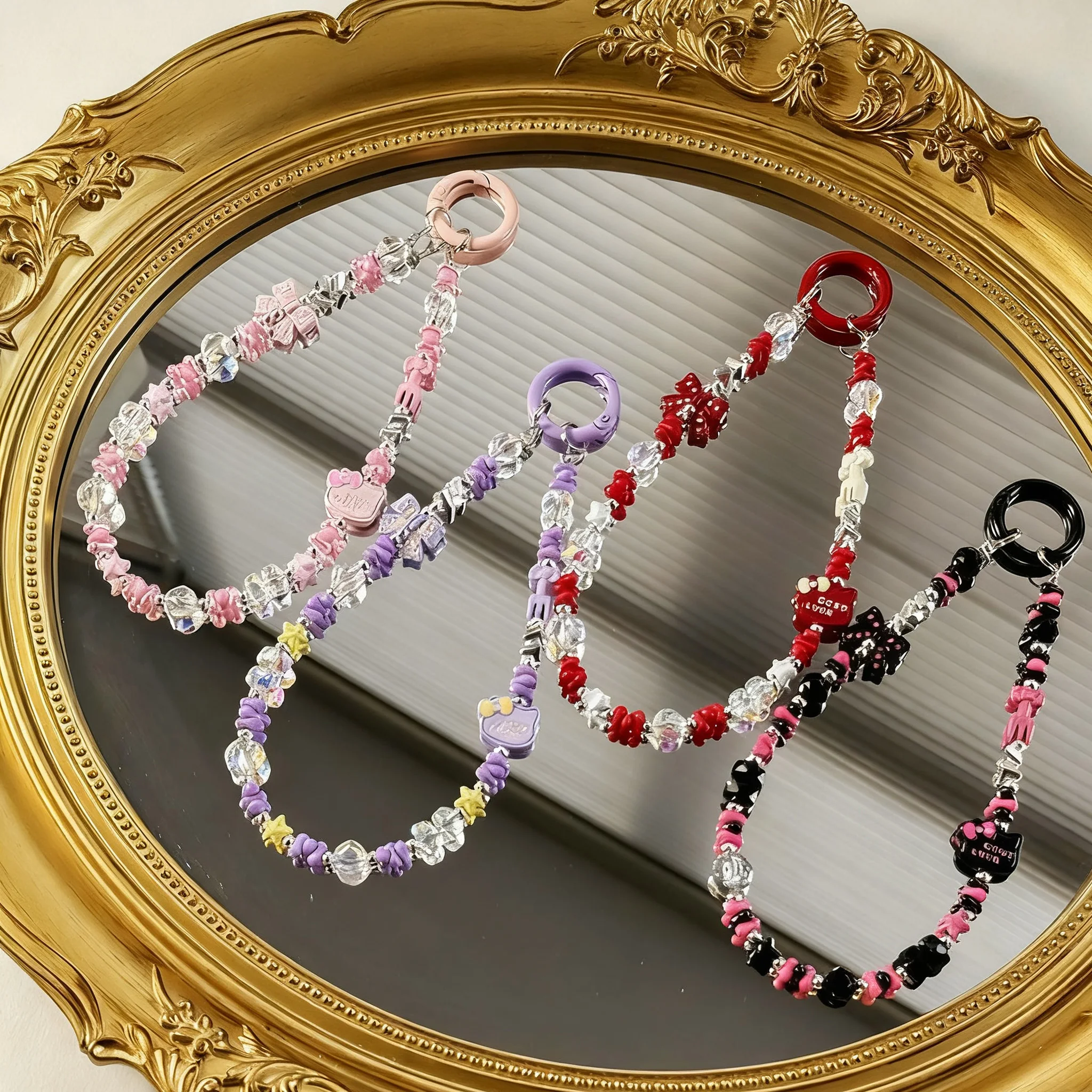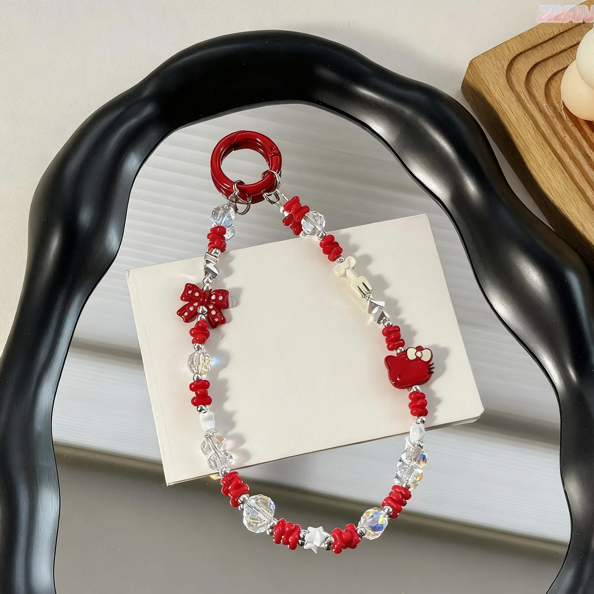Cartoon KT Cat Alloy Mobile Phone Chain Acrylic Black Pink Cool Color Peanut Beads Bag Hanger Decorative Keychain Hanger Piece