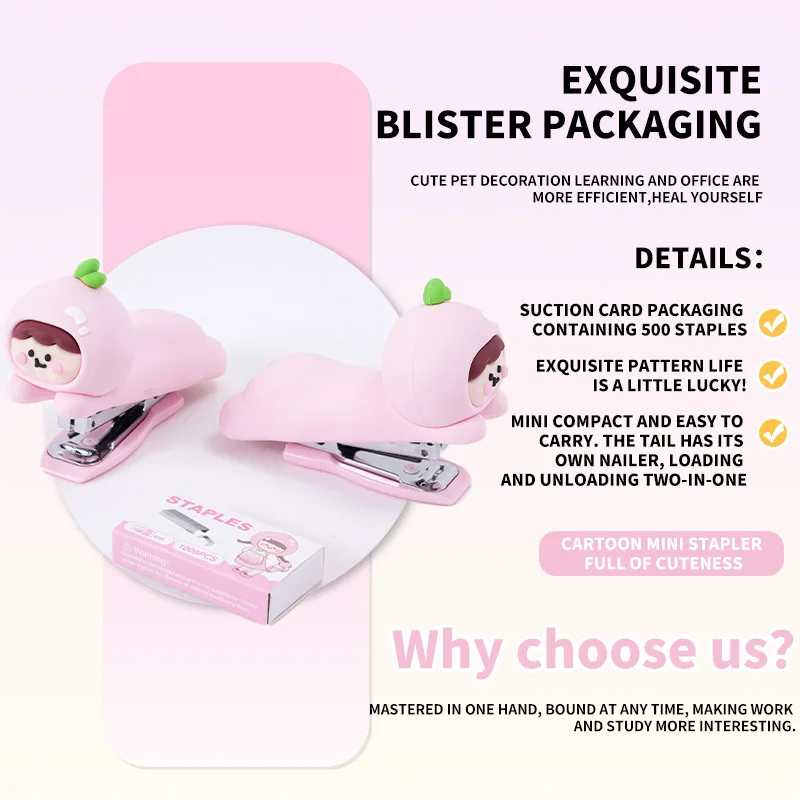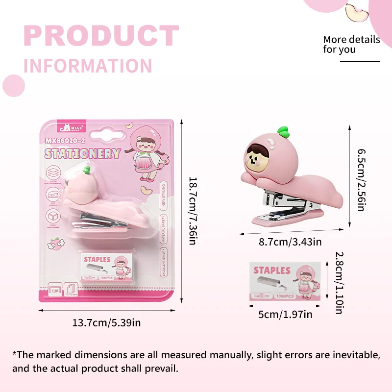 Charming White Peach Stapler Blister Pack Sweetest Office Essential