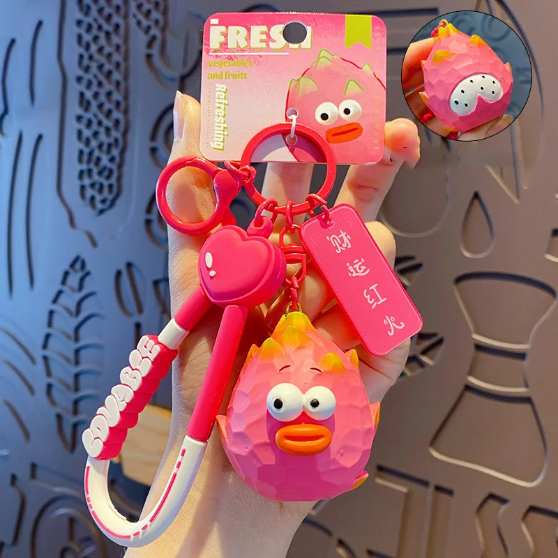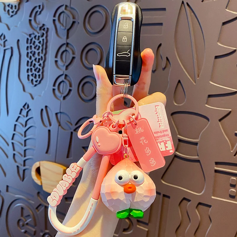 Playful Pop-Eye Durian/Peach Keychains - Quirky Fruit Collection for Bag Decoration
