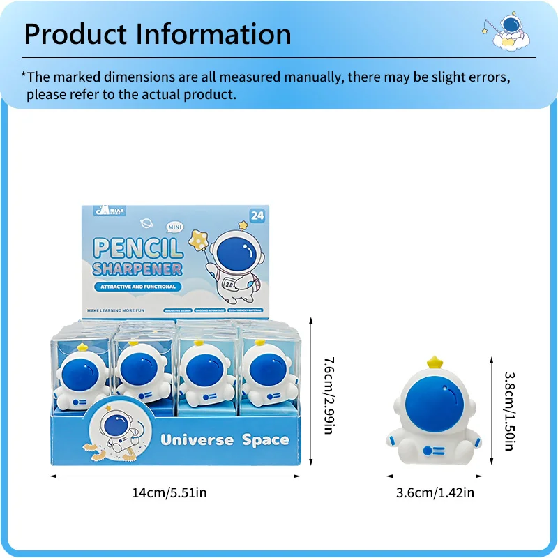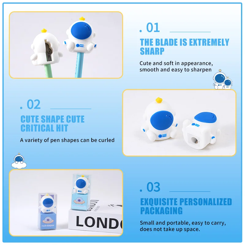 Mini Cute Astronaut Pencil Sharpener Cartoon Spaceman Stationery for Kids