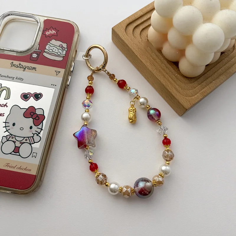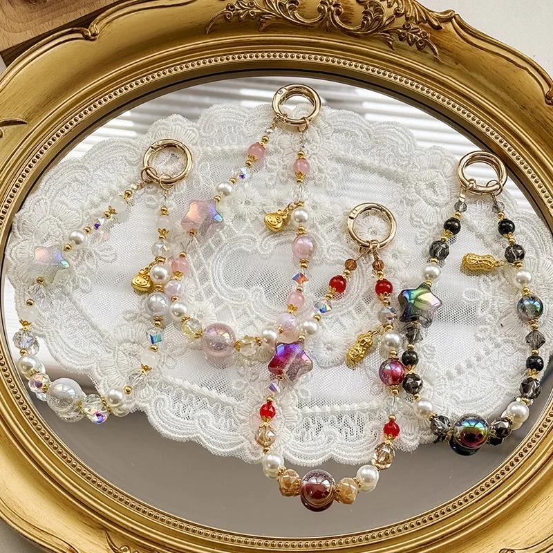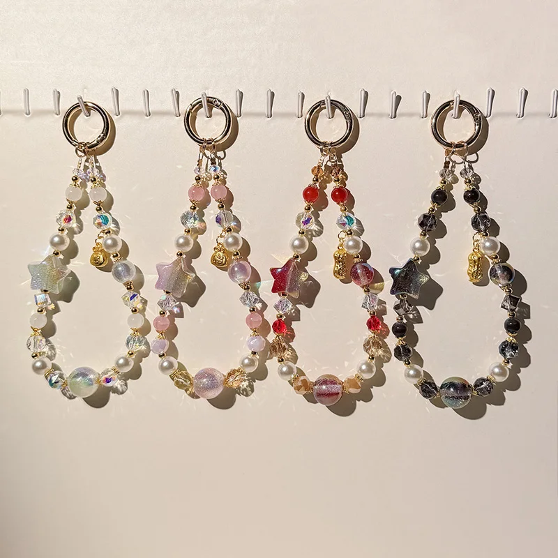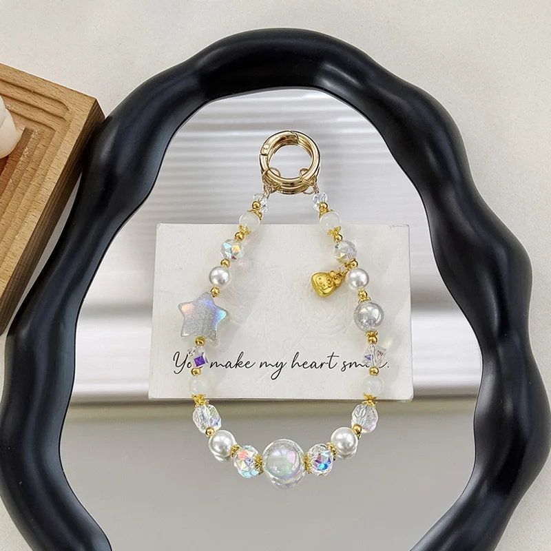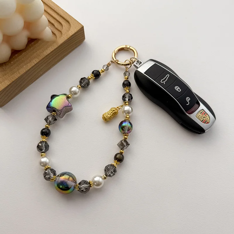 Premium Starry Bead & Five-Point Star Phone Chain - Car Keychain + Crystal Accents, Elegant Bag Charm