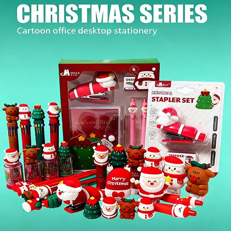 Christmas Series Stationery Set: Stapler + Tape Dispenser + Pen + Pencil Sharpener + Glue Stick | Student Supplies