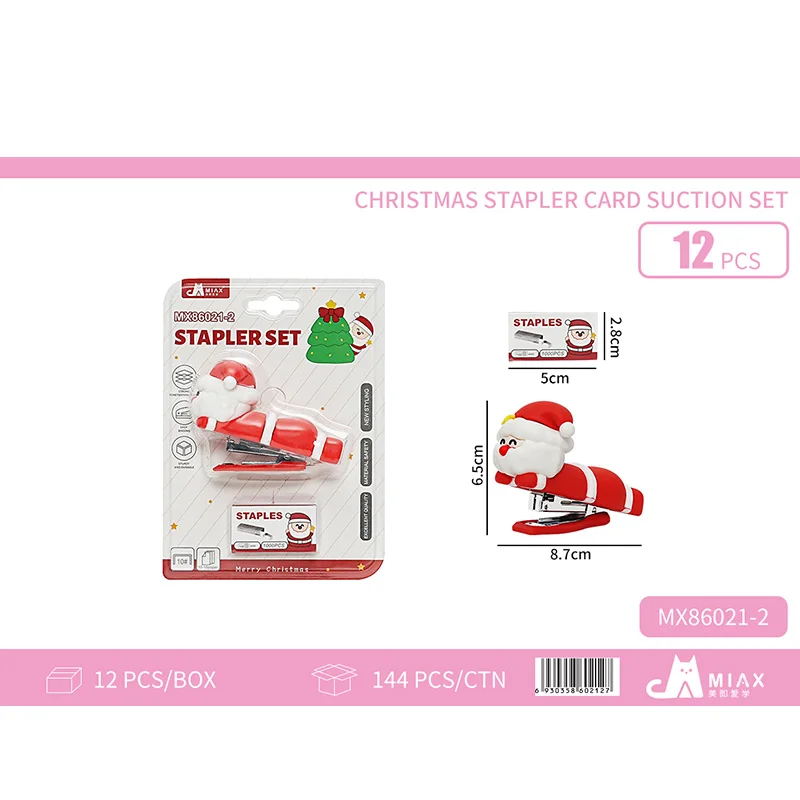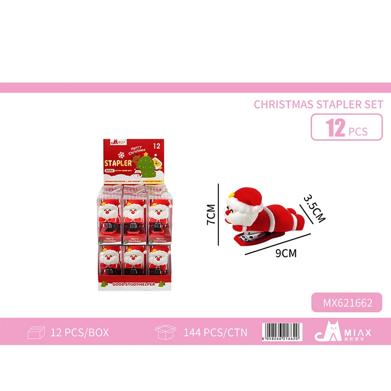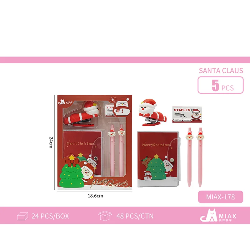 Festive Christmas Themed Stationery Kit: Cute Stapler Tape Holder + Writing Pen + Pencil Sharpener Solid Glue Student Essential