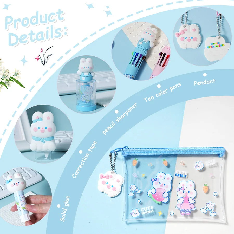 Student Stationery Solid Glue, Correction Tape, Pencil Sharpener, 10 Color Neutral Pen, Name Label - School Gift