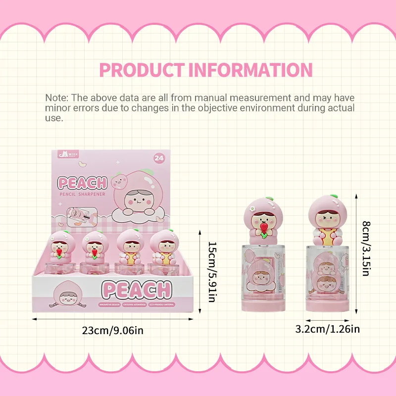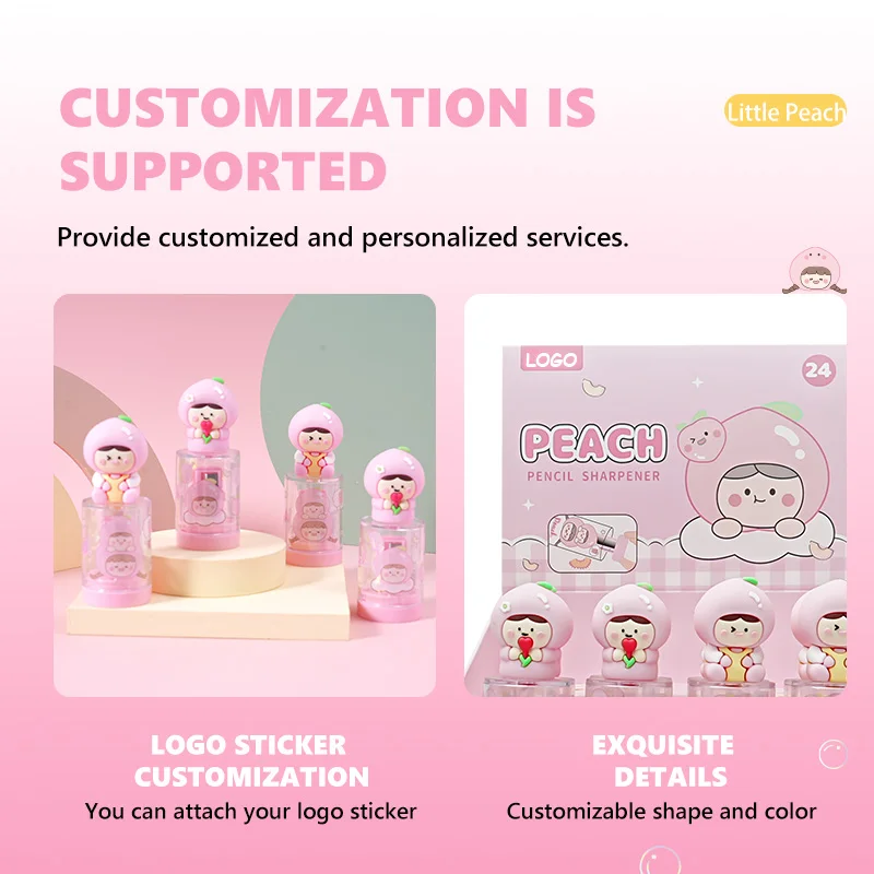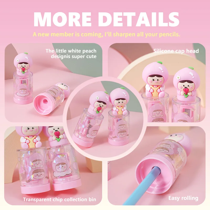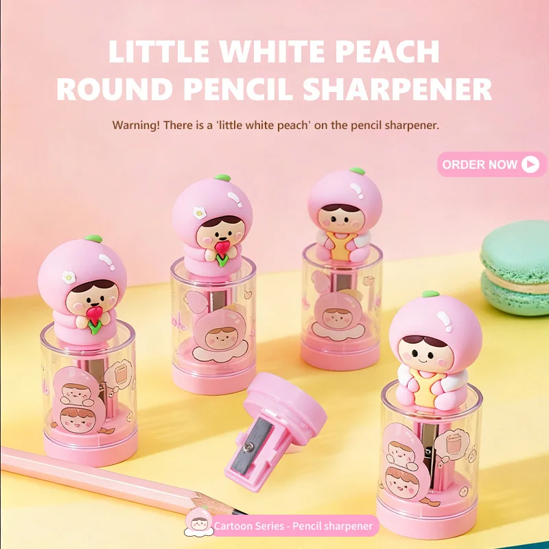 Kawaii White Peach Pencil Sharpener - Cute Doll-Shaped Stationery, Best-Selling Cartoon Series on AliExpress