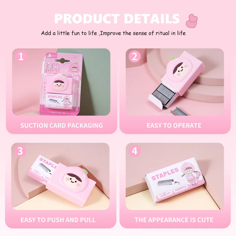 Best-Selling Cartoon Peach Staples - Adorable Office Supply for School & Work