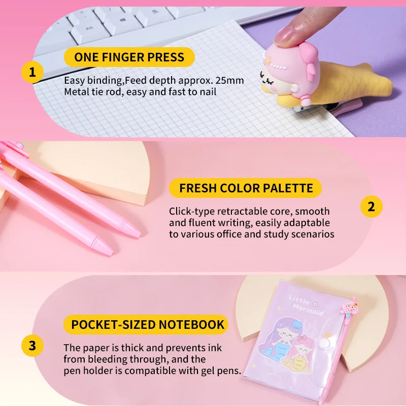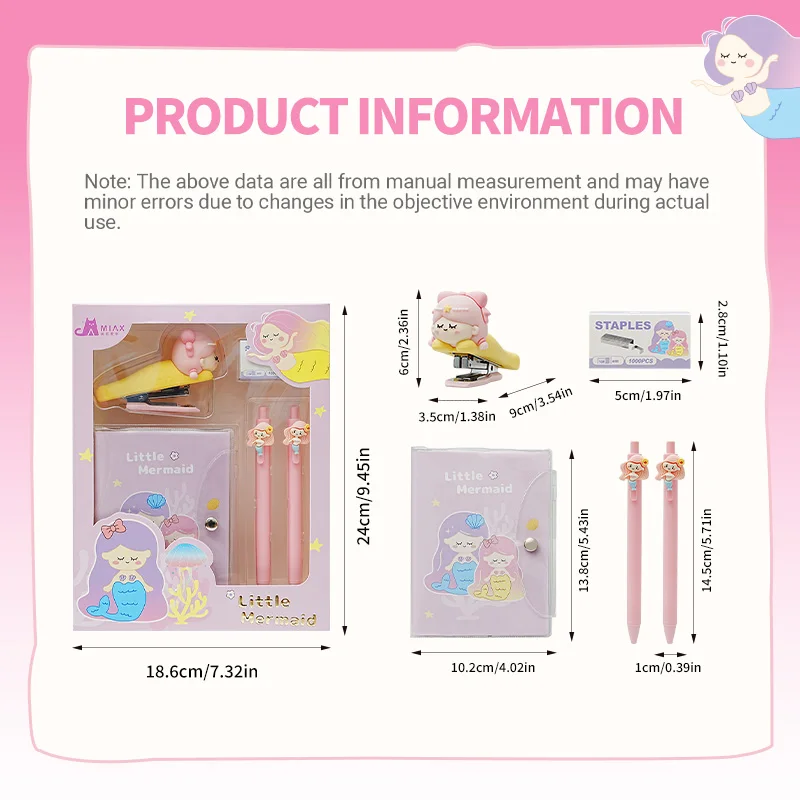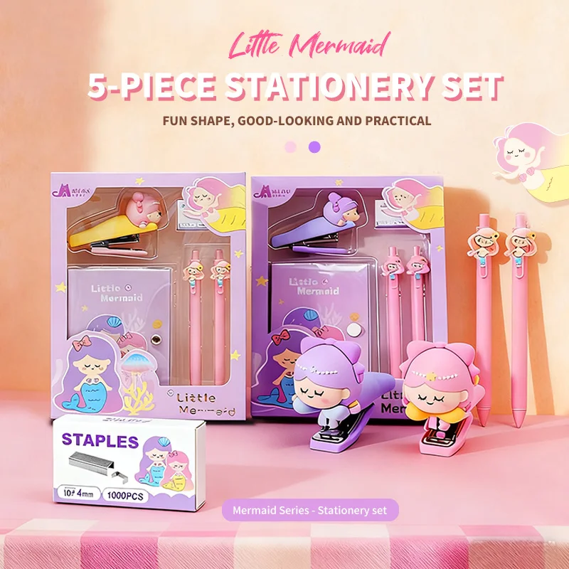 Best-Selling Little Mermaid Cartoon Stationery 5PCS - Adorable School & Office Supplies for Kids
