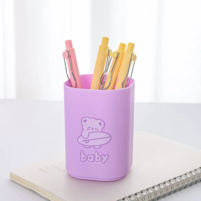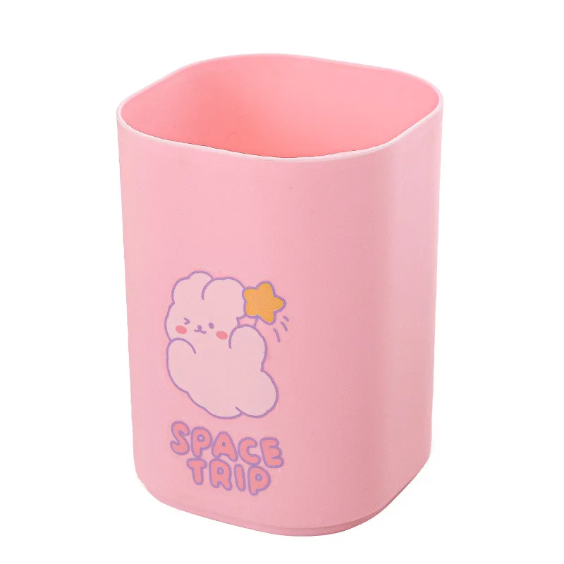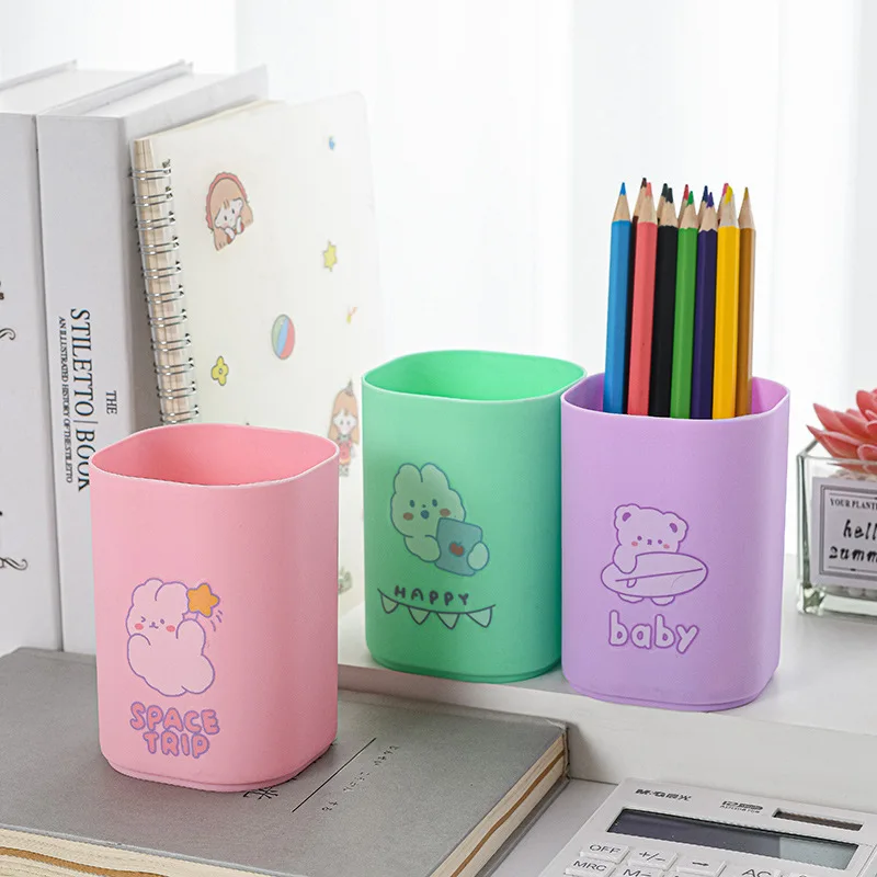 Macaron Color Cartoon Pen Holder Large Capacity Wholesale Multi-Functional Square Storage Container Creative DIY Plastic Pen