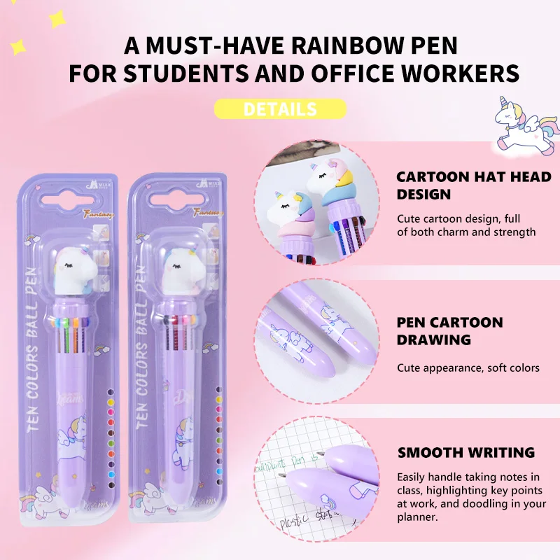 Magical Unicorn 10-Color Pen Set Unleash a Rainbow of Creativity with Enchanted Colors