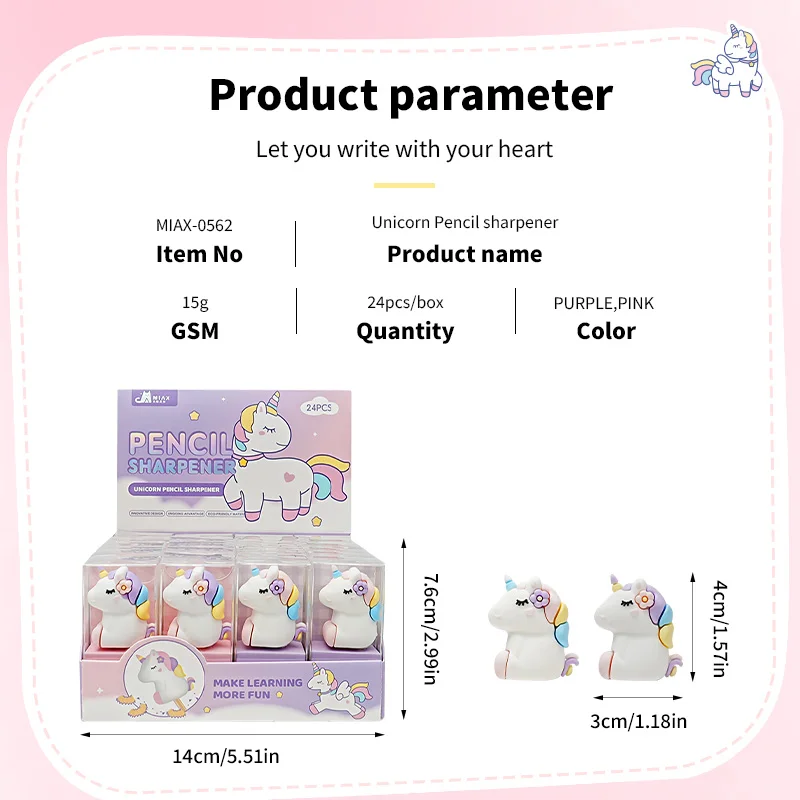 Hot Sale Kawaii Unicorn Mini Pencil Sharpener - Cute Cartoon Stationery Gift for Kids School Supplies