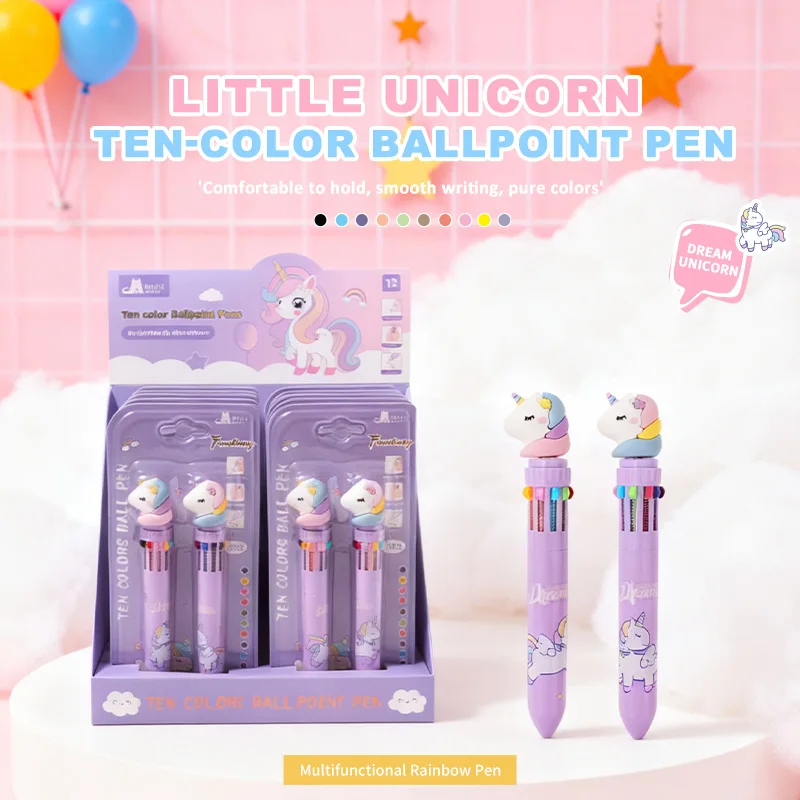 Hot Sale Kawaii Unicorn 10-Color Pen 2pcs Blister Card Set - Cute Stationery for Kids School & Office Supplies