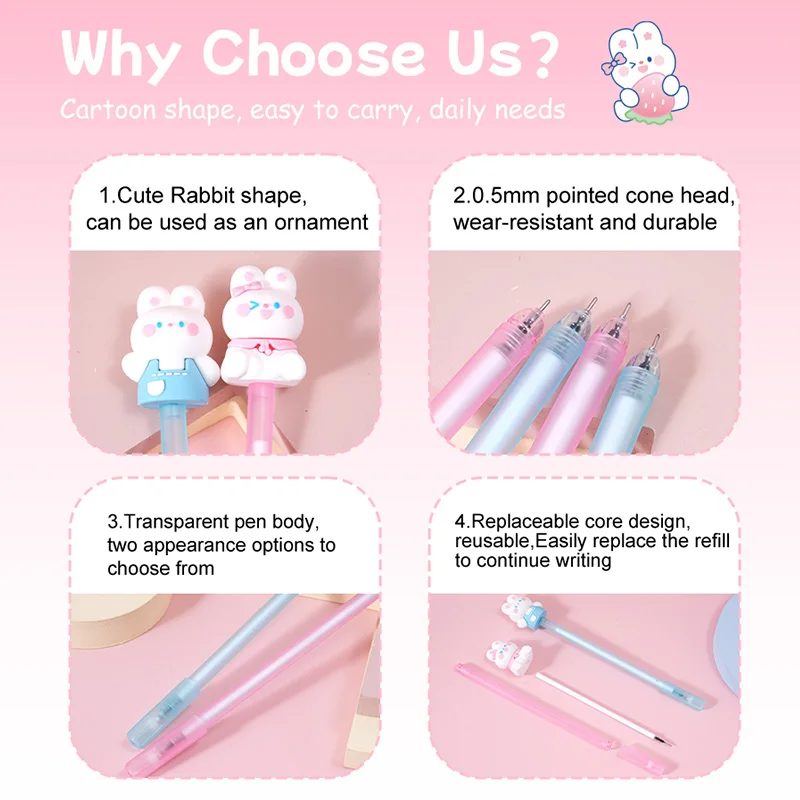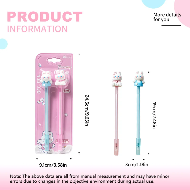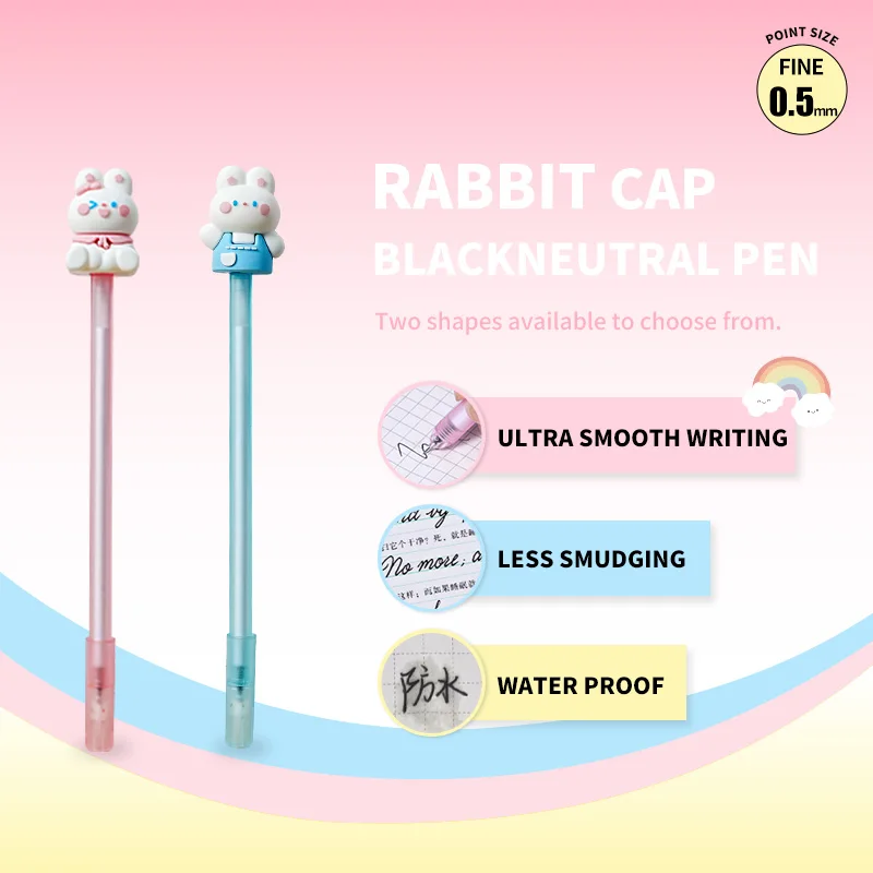 Hot Sale Kawaii Adorable Bunny Capped Cartoon Pen 2pcs Blister Card Set - Cute School Supplies for Kids Back to School Gift