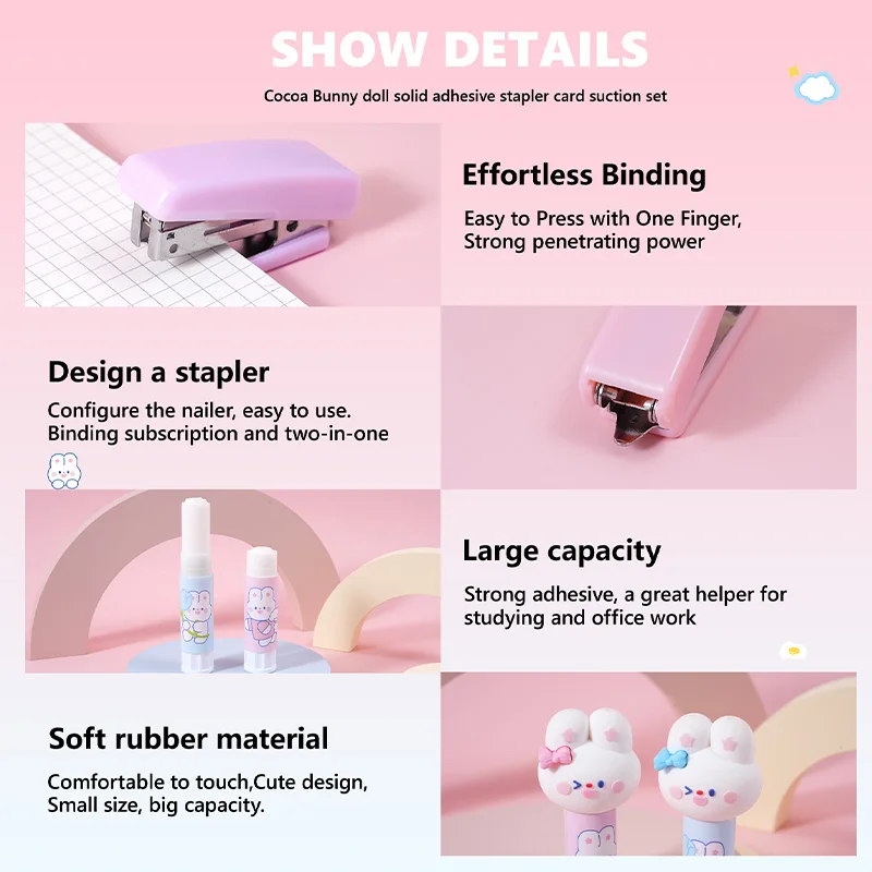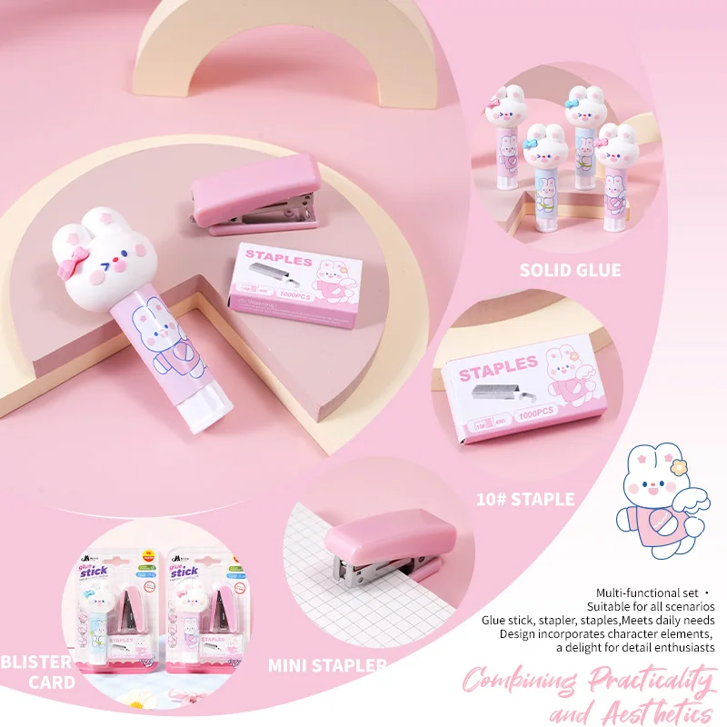 Popular Cute Solid Glue & Stapler Combo Blister Set - Multipurpose Stationery for Office, Students & DIY Crafts