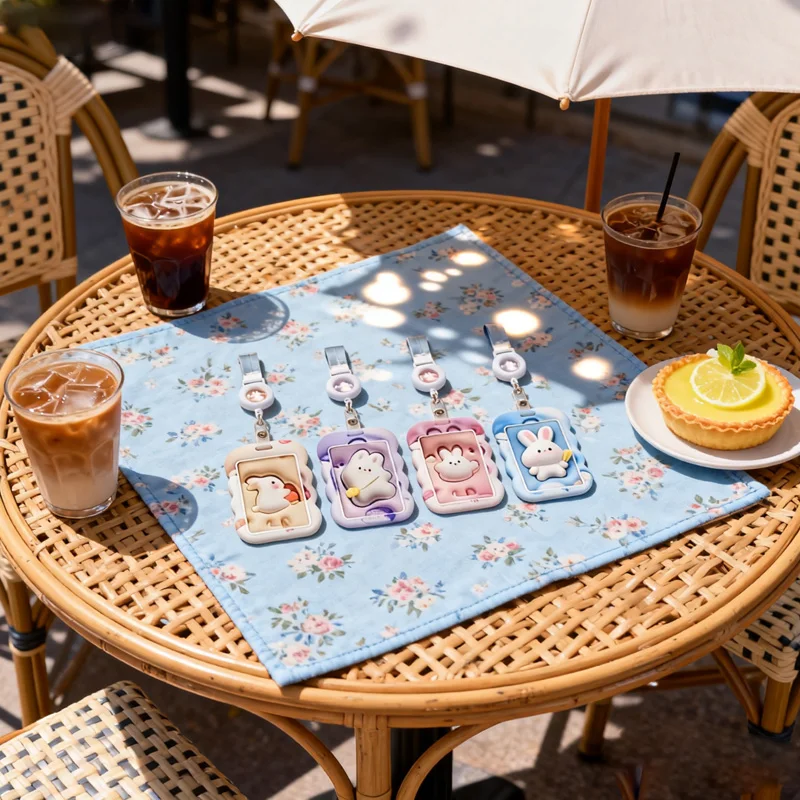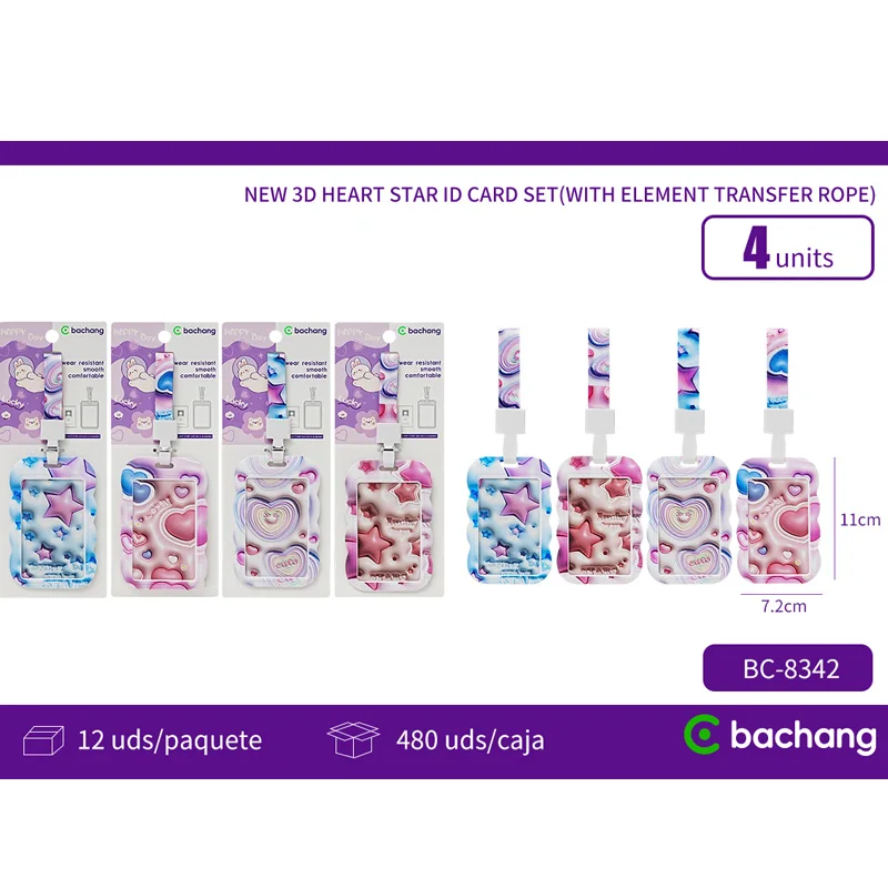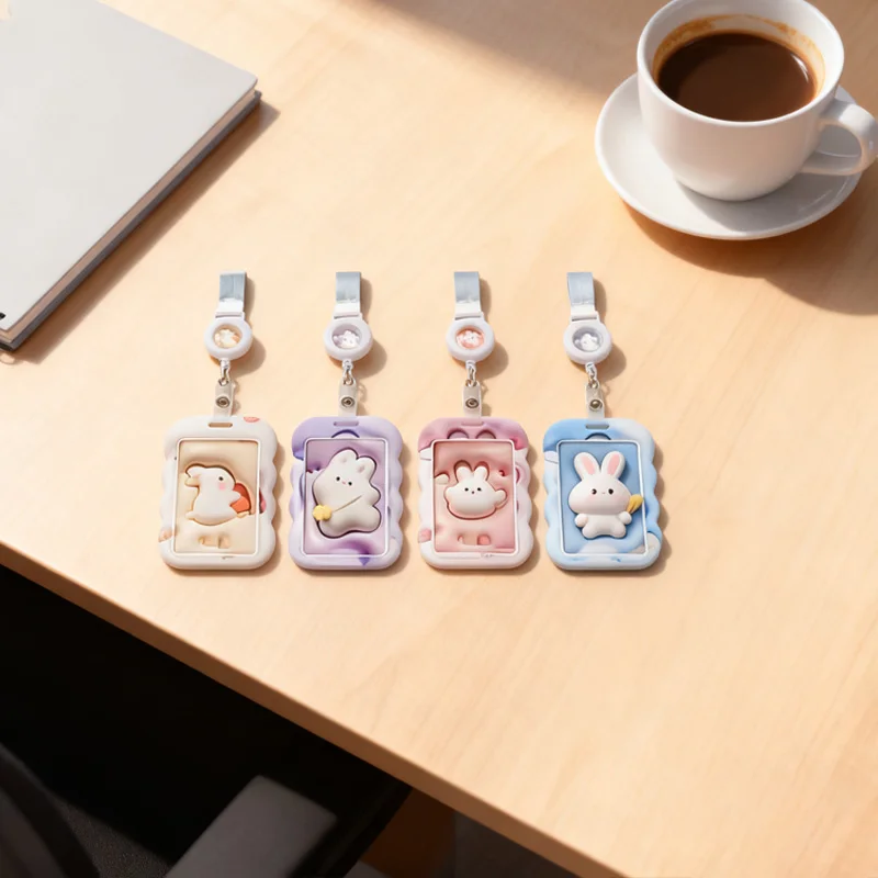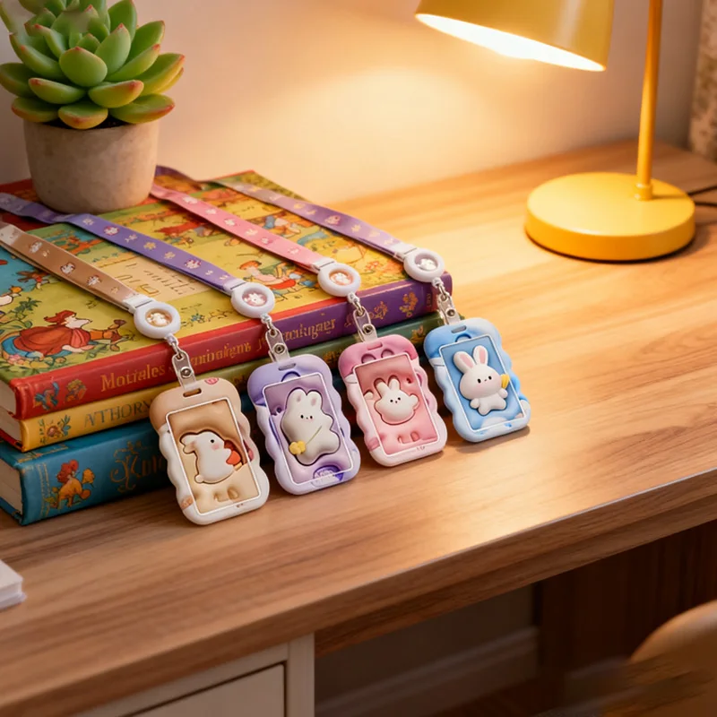 Universal 3D Pattern Card Holder Lanyard Set, Durable PVC ID Badge Holder with Detachable Strap